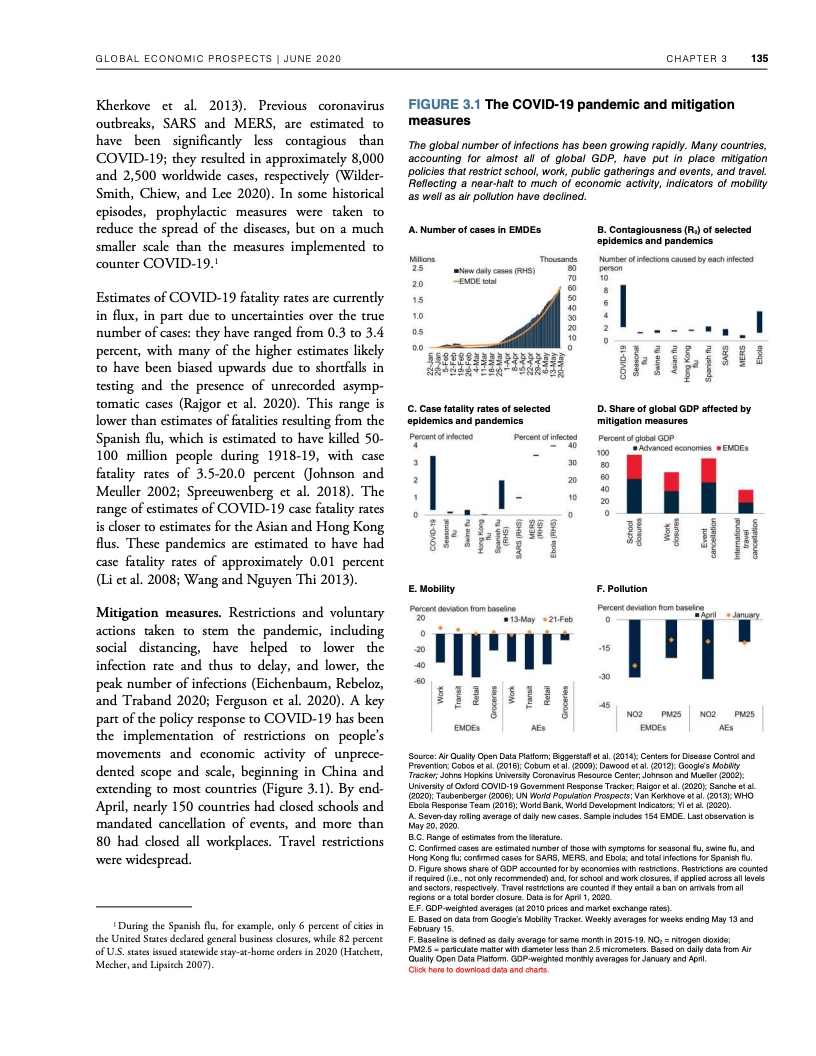 根据发达经济体在今年年中、新兴市场及发展中经济体在今年稍晚时候疫情出现消退等假设前提预测,世行预计2021年全球经济将恢复增长4.2%。其中,发达经济体增长3.9%,新兴市场及发展中经济体增长4.6%。
