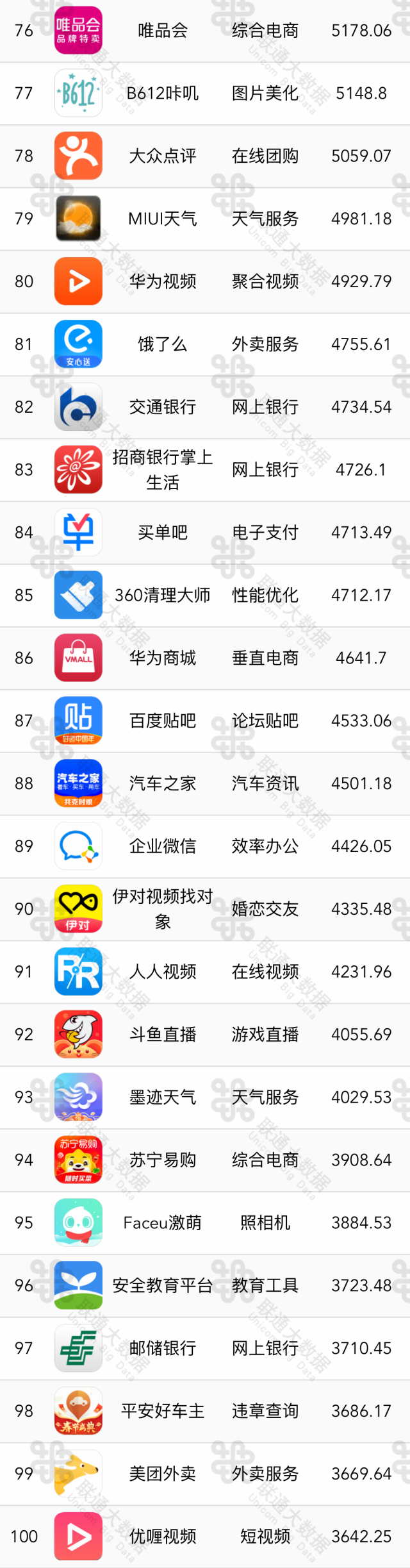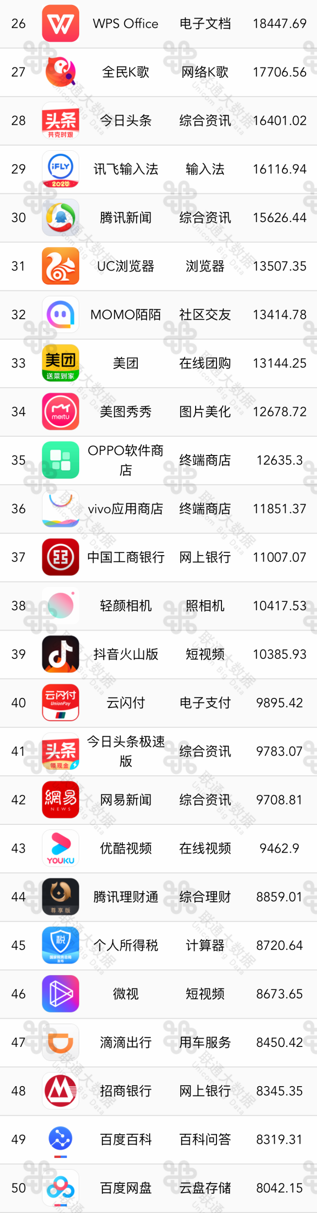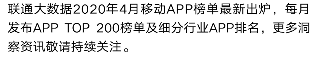 中国联通:2020年4月移动APP指数排行榜 ▲上下滑动查看更多 来自:中国联通大数据 更多阅读:App Annie:2020年3月全球移动应用指数排行榜App Annie:2020年2月移动应用指数排行榜App Annie:2020年5月全球移动应用指数排行榜App Annie:2020年6月全球移动应用指数排行榜App Annie:2020年7月全球移动应用指数排行榜App Annie:2019年8月全球移动应用指数排行榜App Annie :2020年8月全球移动应用指数排行榜2017年移动App将成为电商企业必争之地Shoutem:移动APP商店发展历史VisionMobile:哪种App更赚钱Compuware:85%的用户喜欢移动APP胜于移动网页Distimo:2011年移动APP商店报告关键数据分享零售商转向移动app来促进销售Flurry:游戏主导移动APP 独立开发商占主导是开发移动APP还是建立移动网页?–数据信息图