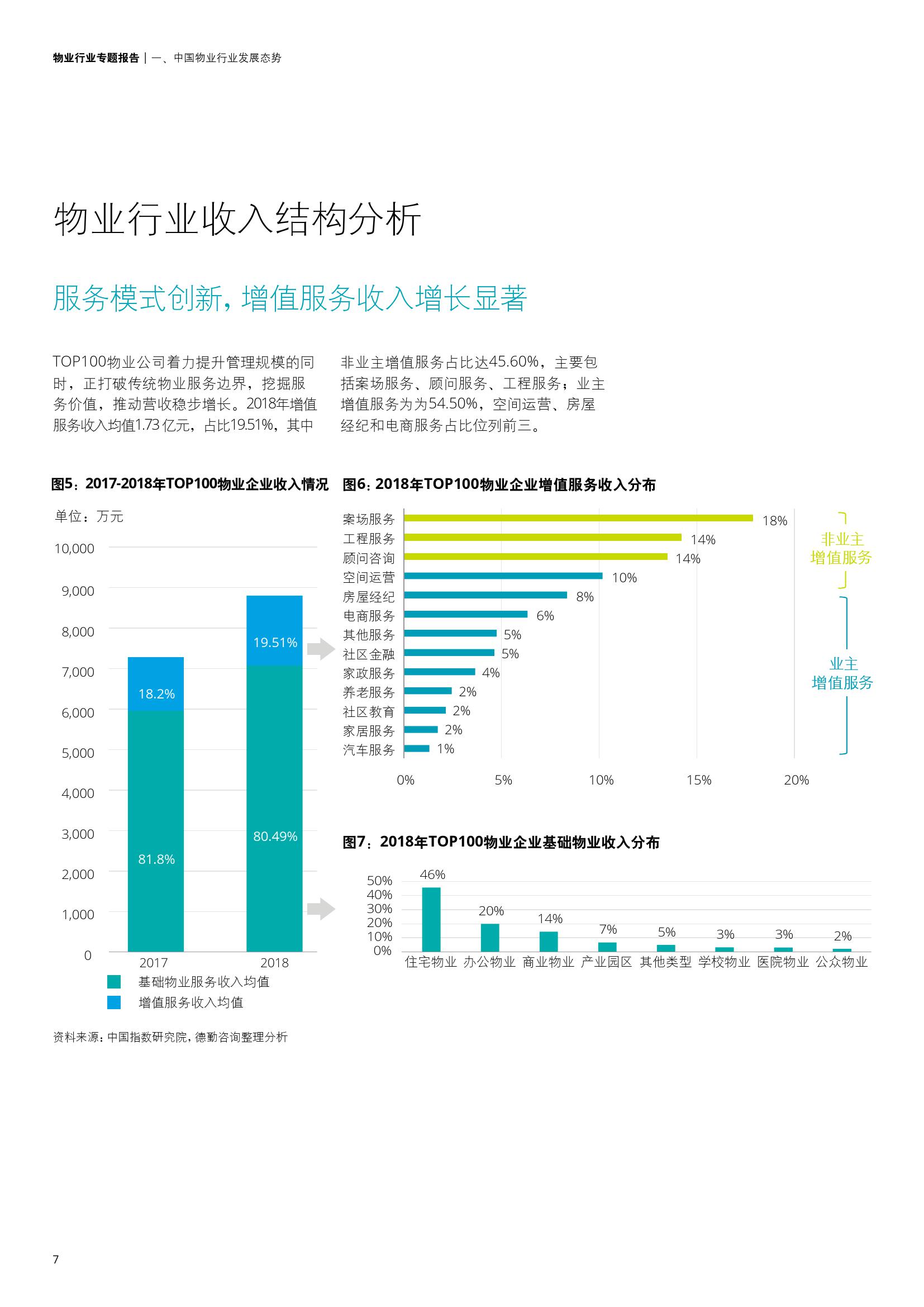 从物业行业收入结构来看,TOP100物业公司着力提升管理规模的同时,正打破传统物业服务边界,进行服务模式创新,增值服务收入增长显著。