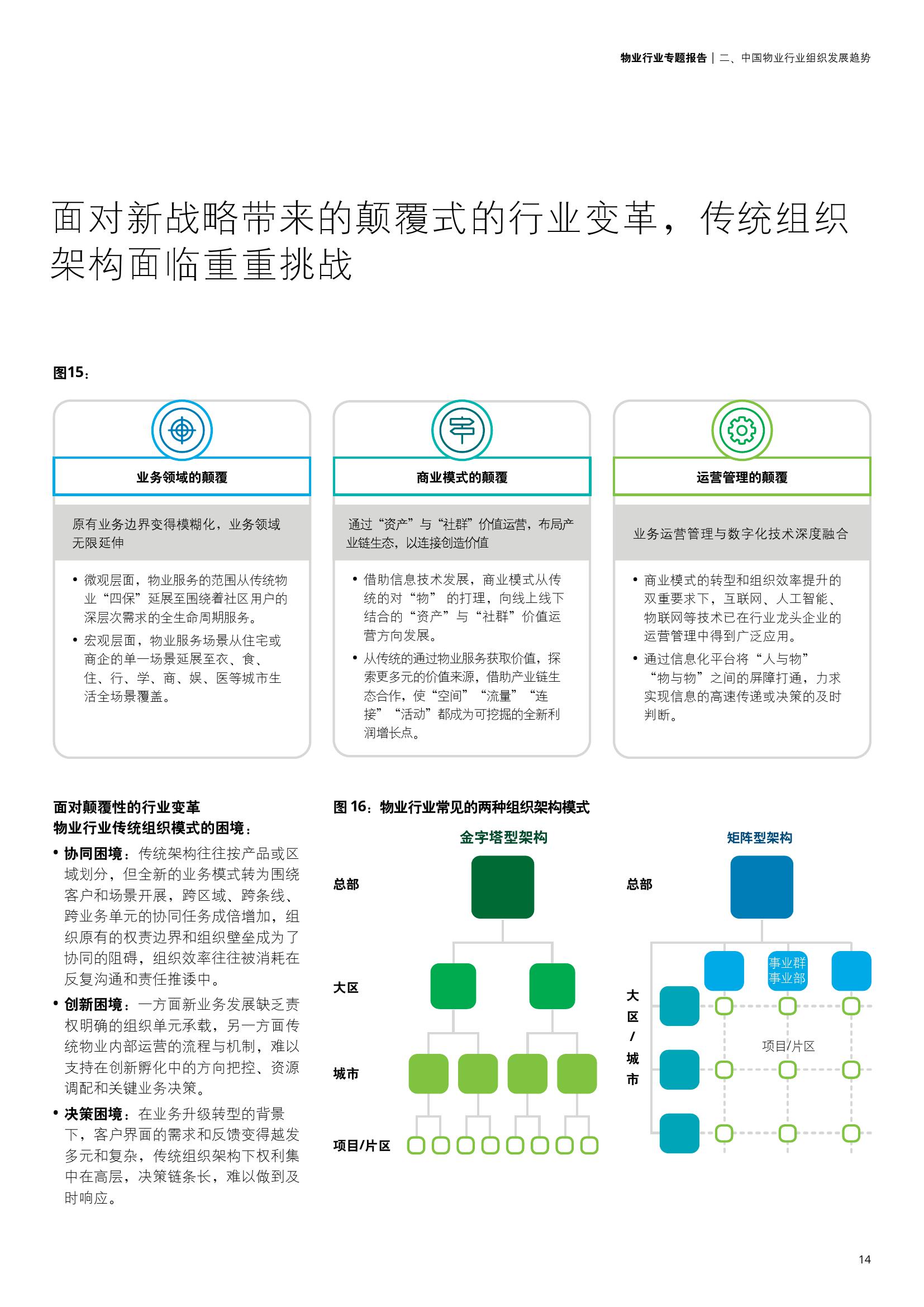物业行业竞争的下半场,行业标杆企业纷纷启动转型升级,投资并购、社区生态、城市服务、科技驱动、跨界合作成为了行业发展的关键词。面对新战略带来的颠覆式的行业变革,传统组织架构面临着协同困境、创新困境与决策困境。