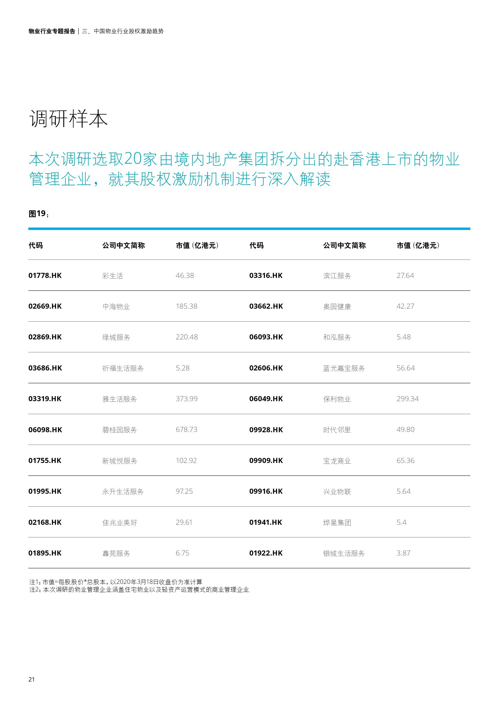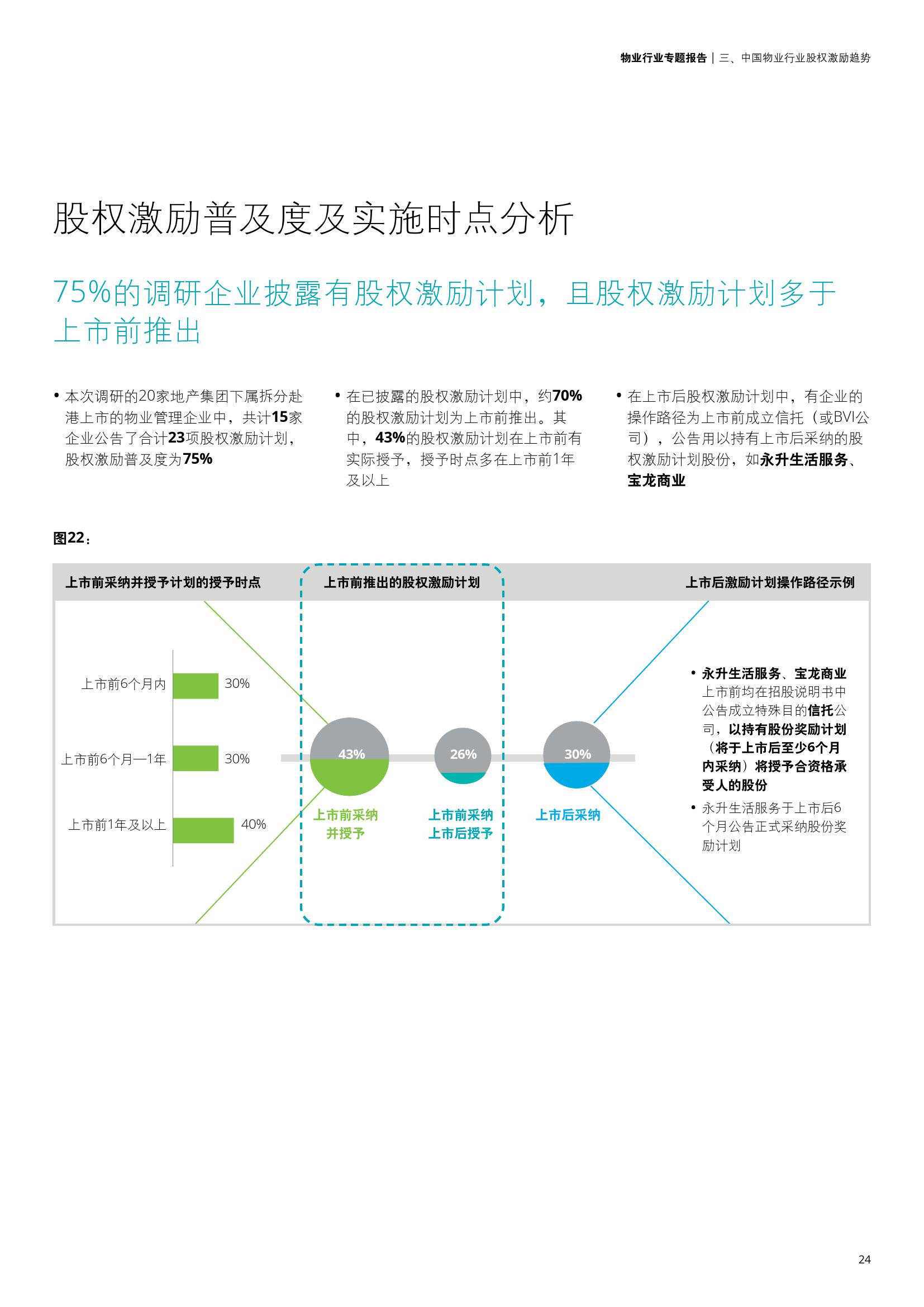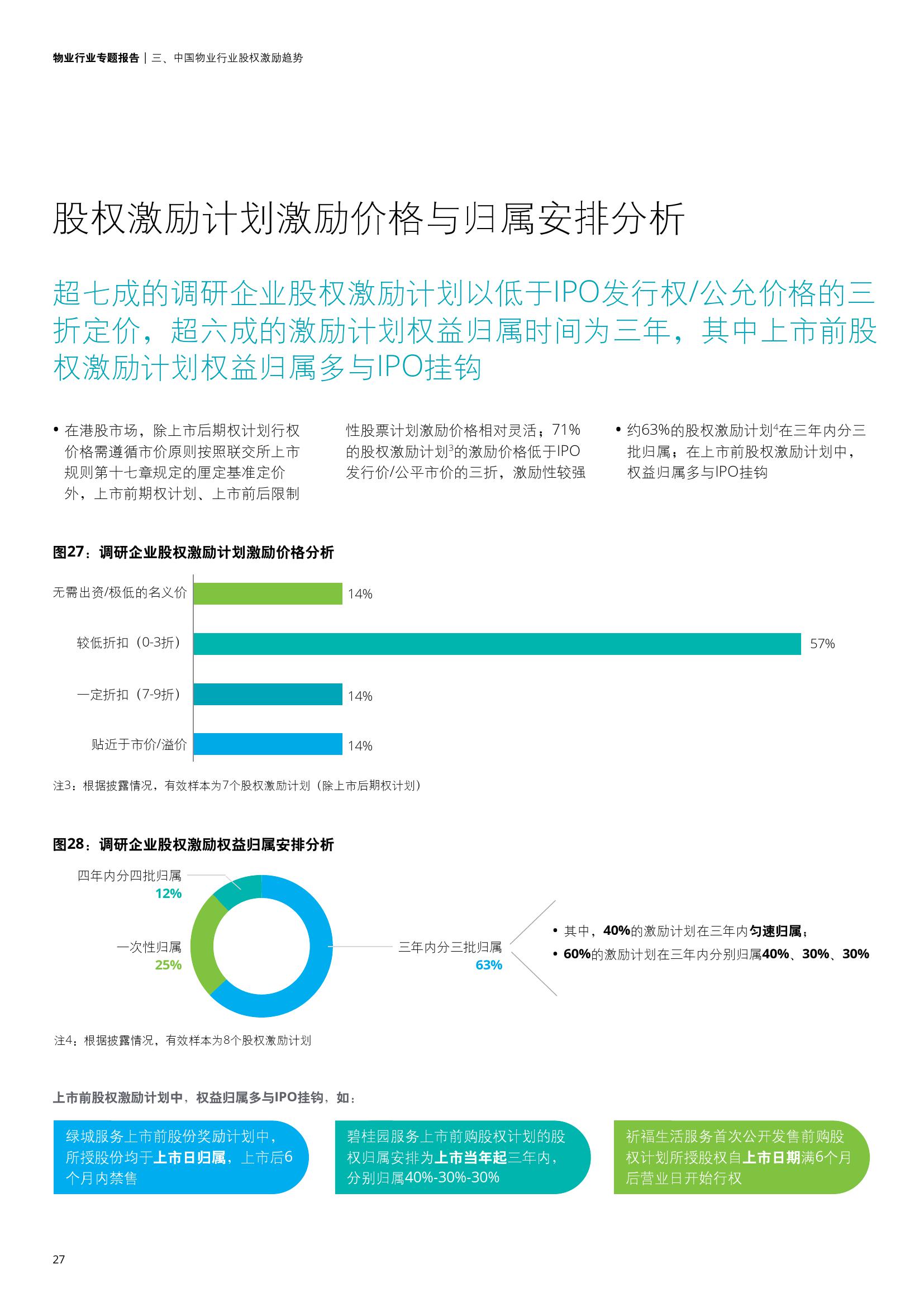 同时,本报告对调研物业管理企业股权激励计划的普及度、实施时点、计划数量、激励工具、激励额度、激励分配、激励价格以及归属安排进行趋势分析,以期为物业管理企业探索股权激励机制提供参考。