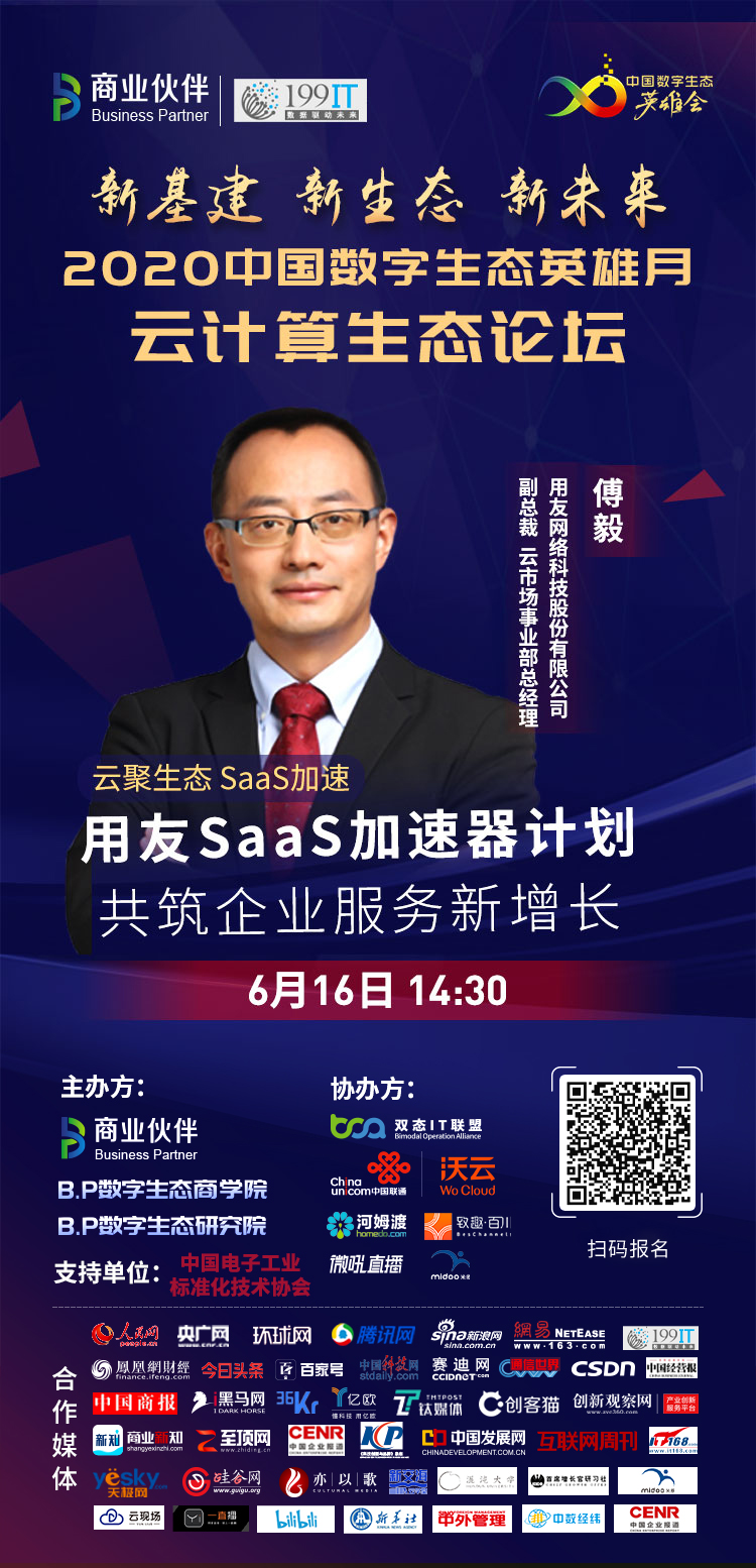 用友网络科技股份有限公司 副总裁 、云市场事业部总经理 傅毅:云聚生态 SaaS加速–用友SaaS加速器计划 共筑企业服务新增长