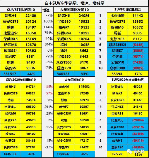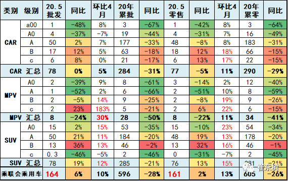 5月SUV零售同比增长13%,其中B级SUV同比去年5月增32%,A级SUV同比去年5月增19%,大众等合资SUV较强,自主的长安、长城等SUV表现突出。