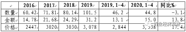 根据中国海关提供的数据,2020年1-4月份我国进口活牛7.38万头,同比23.9%。其中,来自澳大利4.88万头、新西兰2.50万头。进口活牛中海关归类的种牛仅为2.05万头,同比-6.6%,来自澳大利亚10258头、新西兰10242头。