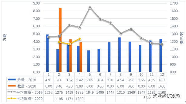 4月到港属于国外3月发船,那个时间段国外疫情还未明显扩散,因此出现集中到货情况,未来随着疫情全球蔓延海运受阻,进口牧草的价格和供应情况将出现新动荡。