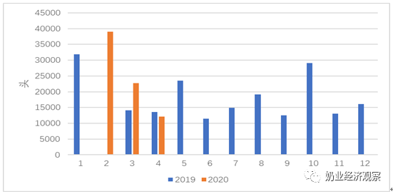 Figure 5‑1中国改良种用牛(月度)进口2019-2020