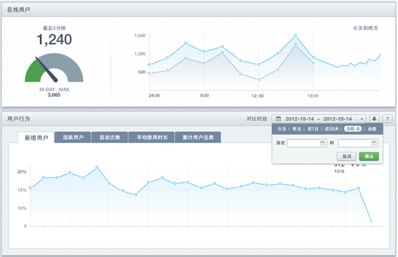 TalkingData Analytics 1.6新增的流失用户分析功能,支持跟踪7日、14日、30日流失用户和回流用户数据,并可圈定流失用户群体,根据他们的使用周期、使用习性来找出流失用户的特征;而行业基准数据(Benchmark)对比功能有助于用户看清自己在行业中的位置,在1.6版中对全部关键指标增加了Benchmark对比功能,支持查看任意应用类型的行业指标均值。此外,实时的预警通知功能可以发挥实时数据的即时监测能力,预警通知功能可以在您的关键指标出现波动时第一时间发出通知邮件,帮助您最快的响应可能出现的严重问题,最快发现才能最快解决,这是实时数据系统能给您的最好福利。