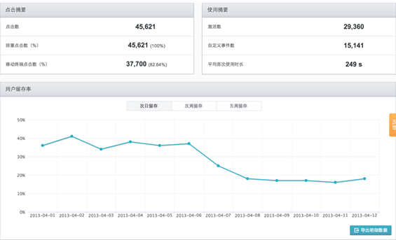 除了新增功能外,TalkingData Analytics 1.6进一步对重要功能进行了全面的优化,优化后的用户分群功能,支持根据自定义事件限定用户群,并且新的用户群的设定界面更为易用;现在可以设置所有达成某一个自定义事件(例如付费)的用户为一个用户群,并以这个用户群作为筛选条件来查看各种报表。 TalkingData Campaign 1.4 TalkingData Campaign从上线开始就得到了广大用户的支持,简单的集成、实时的数据、精确的效果,让TalkingData Campaign成为移动应用推广环节中不可多得的工具。TalkingData Campaign 1.4带来了更多实用功能,除了基础的点击、激活数据外,现在TalkingData Campaign 1.4还提供用户留存功能;同时TalkingData Campaign 1.4开始提供完善的用户权限功能;此外,TalkingData Campaign 1.4重新设计了全部UI,在使用体验上大幅提升。