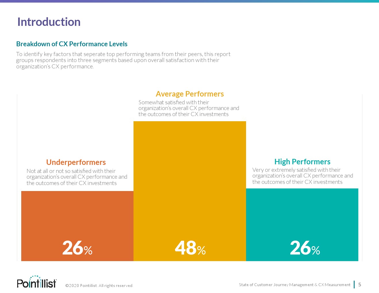 调查发现,26%的受访者属于高绩效CX团队,48%的受访者被认为表现一般,26%的受访者表现不佳。