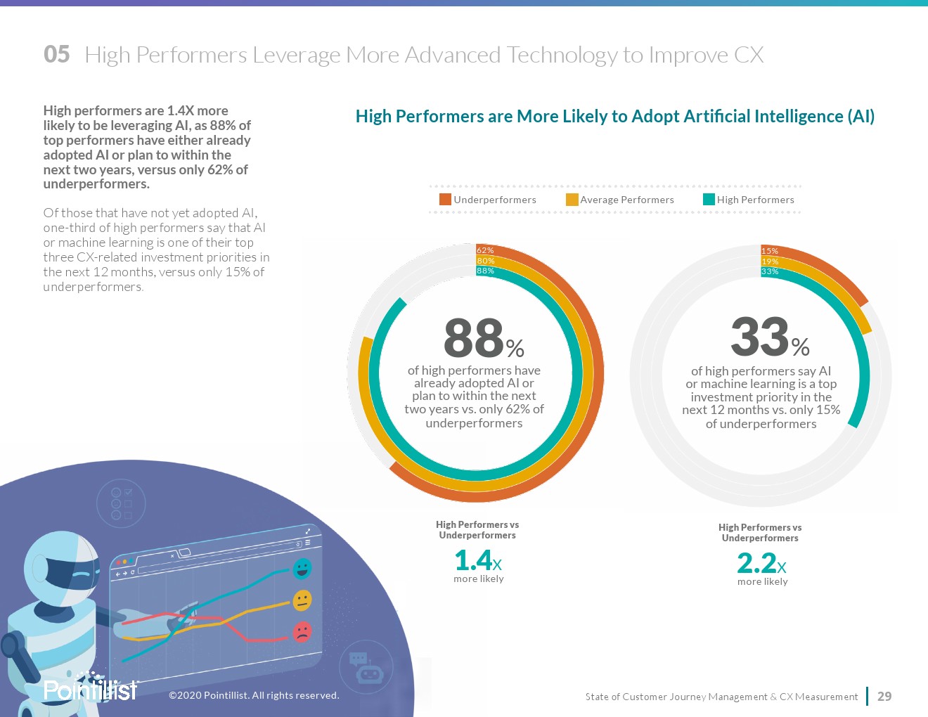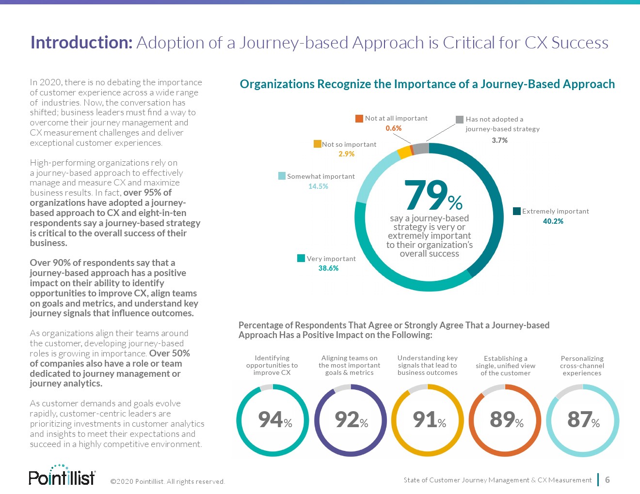 Pointillist调查了CX(客户体验)、分析、客户服务和营销专业人士中,其中80%的受访者表示,基于历程的战略对其企业的整体成功非常重要(39%)或极其重要(40%)。