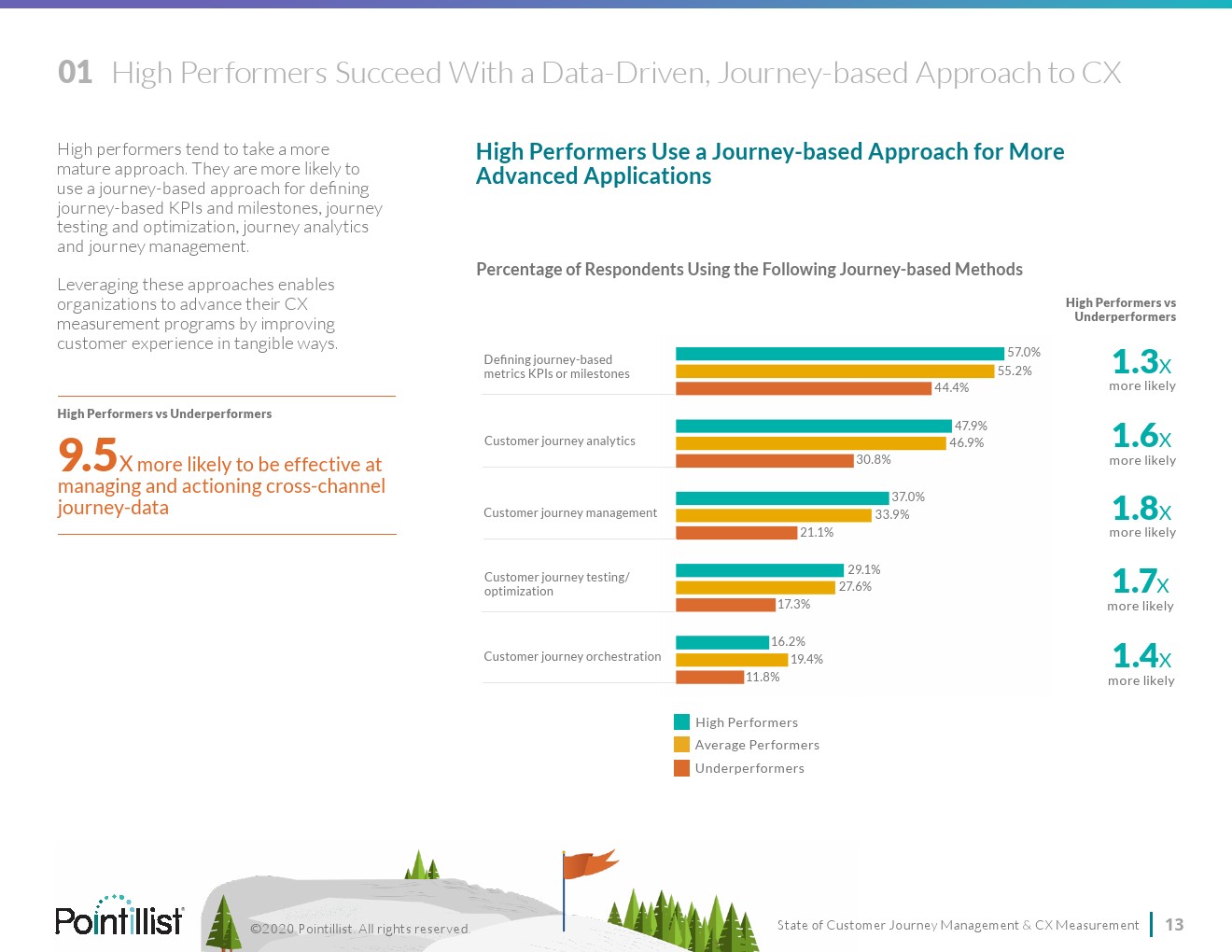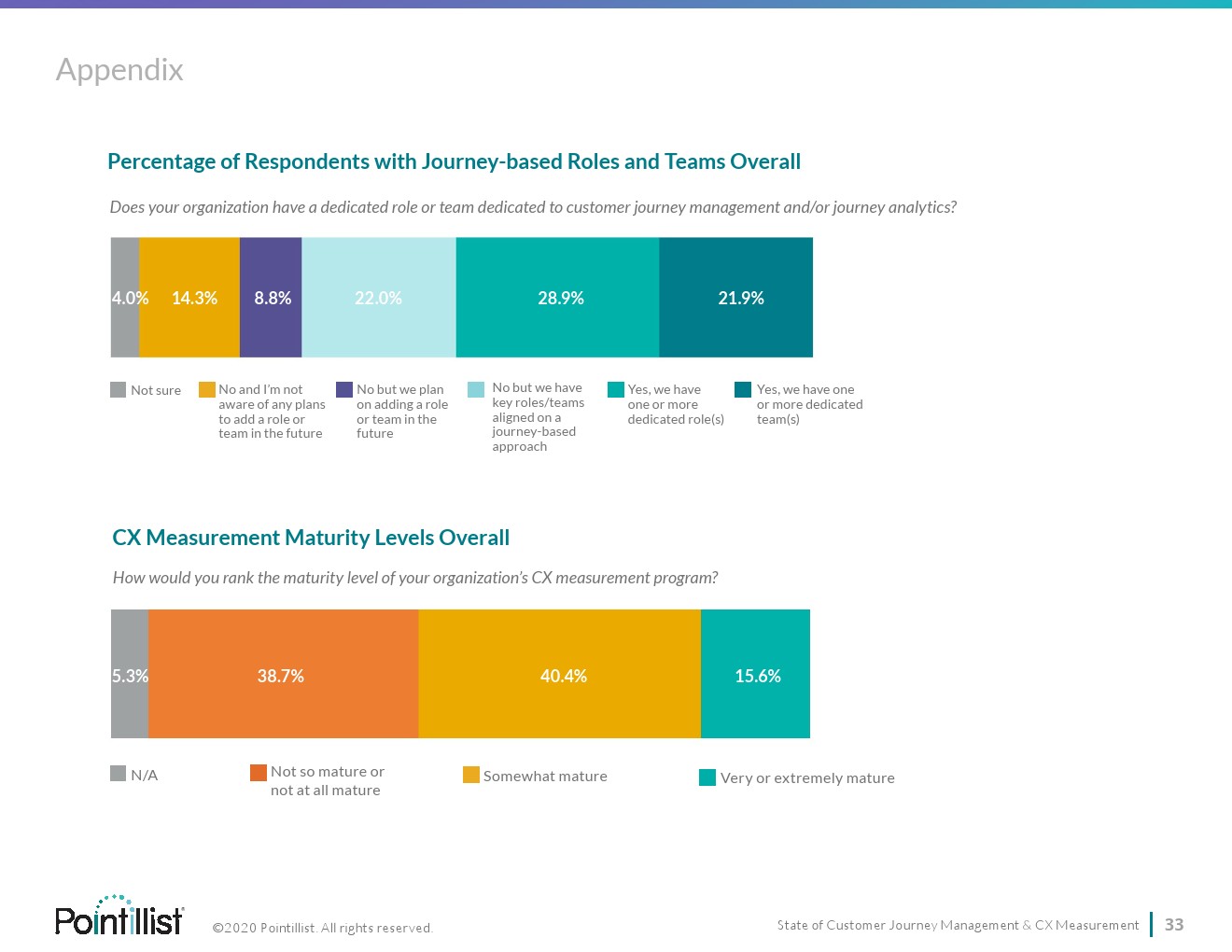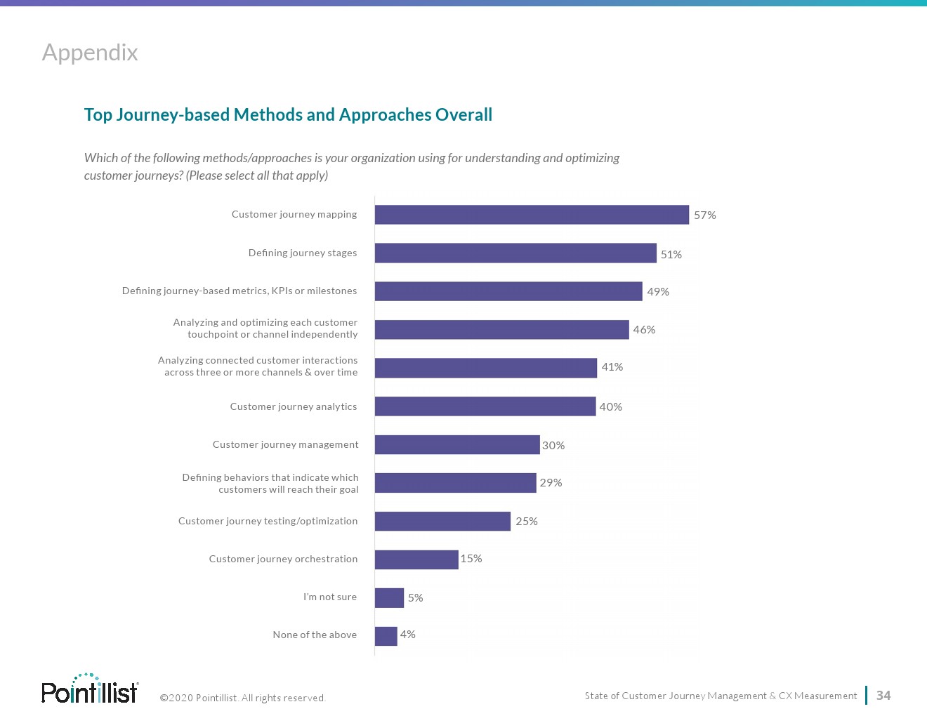 与此同时,Pointilist调查的受访者还定义了历程阶段(51%)以及基于历程的指标、关键绩效指标和里程碑(49%)。