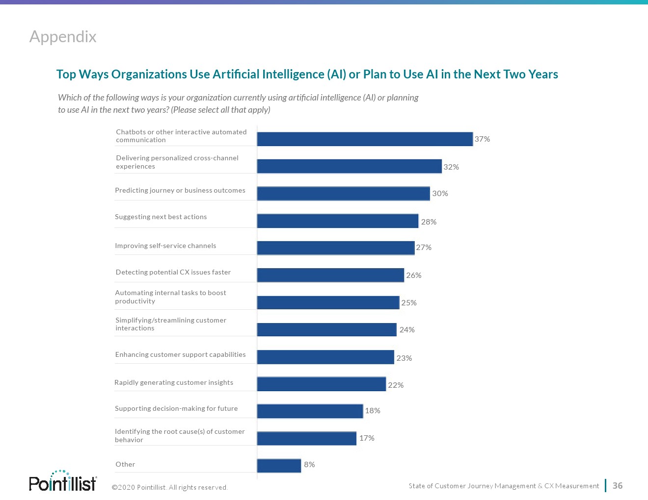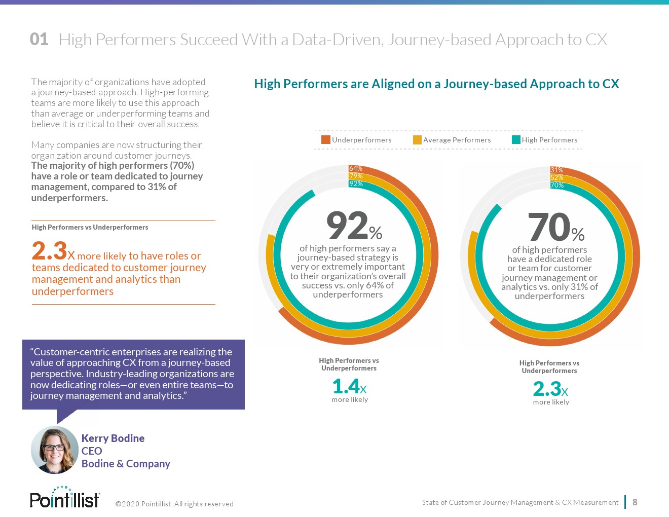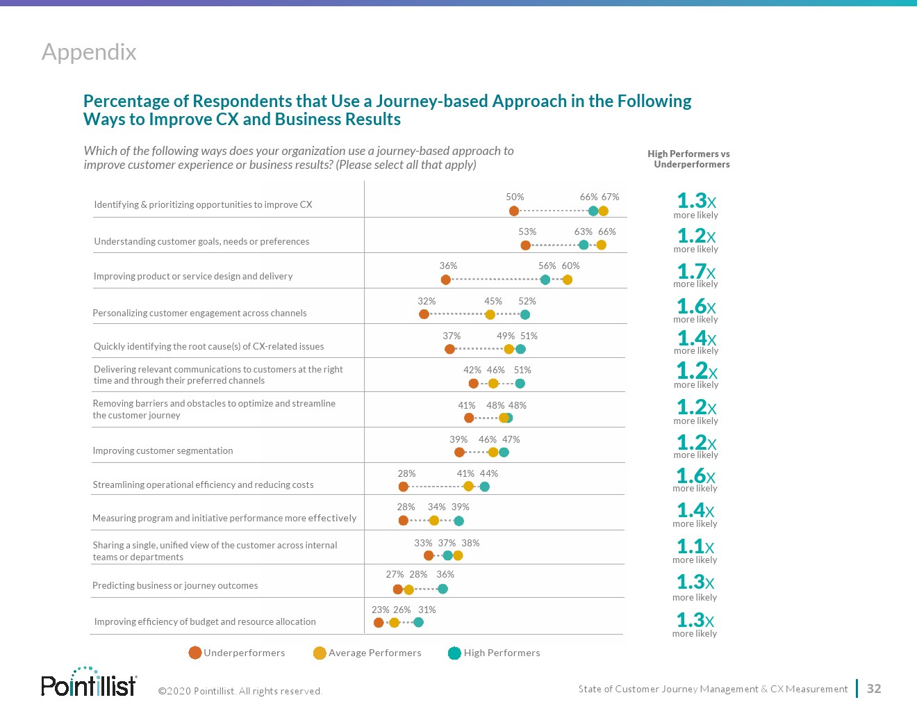 与此同时,Pointilist调查的受访者还定义了历程阶段(51%)以及基于历程的指标、关键绩效指标和里程碑(49%)。