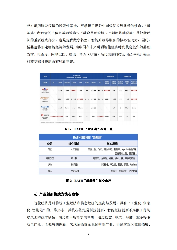 白皮书认为,新型基础设施将加速智能经济发展。未来十年,全球智能经济最重要的主题就是基础设施的重构、切换与迁徙,并在此基础上创新商业生态,实现万物互联。 “新基建”所包含的“信息基础设施”“融合基础设施”“创新基础设施”是智能经济的重要组成部分,也是提供数字转型和智能升级等服务的核心驱动力。当前,百度、阿里巴巴、腾讯、华为等科技公司已经率先开始从科技基础设施层面布局新基建。