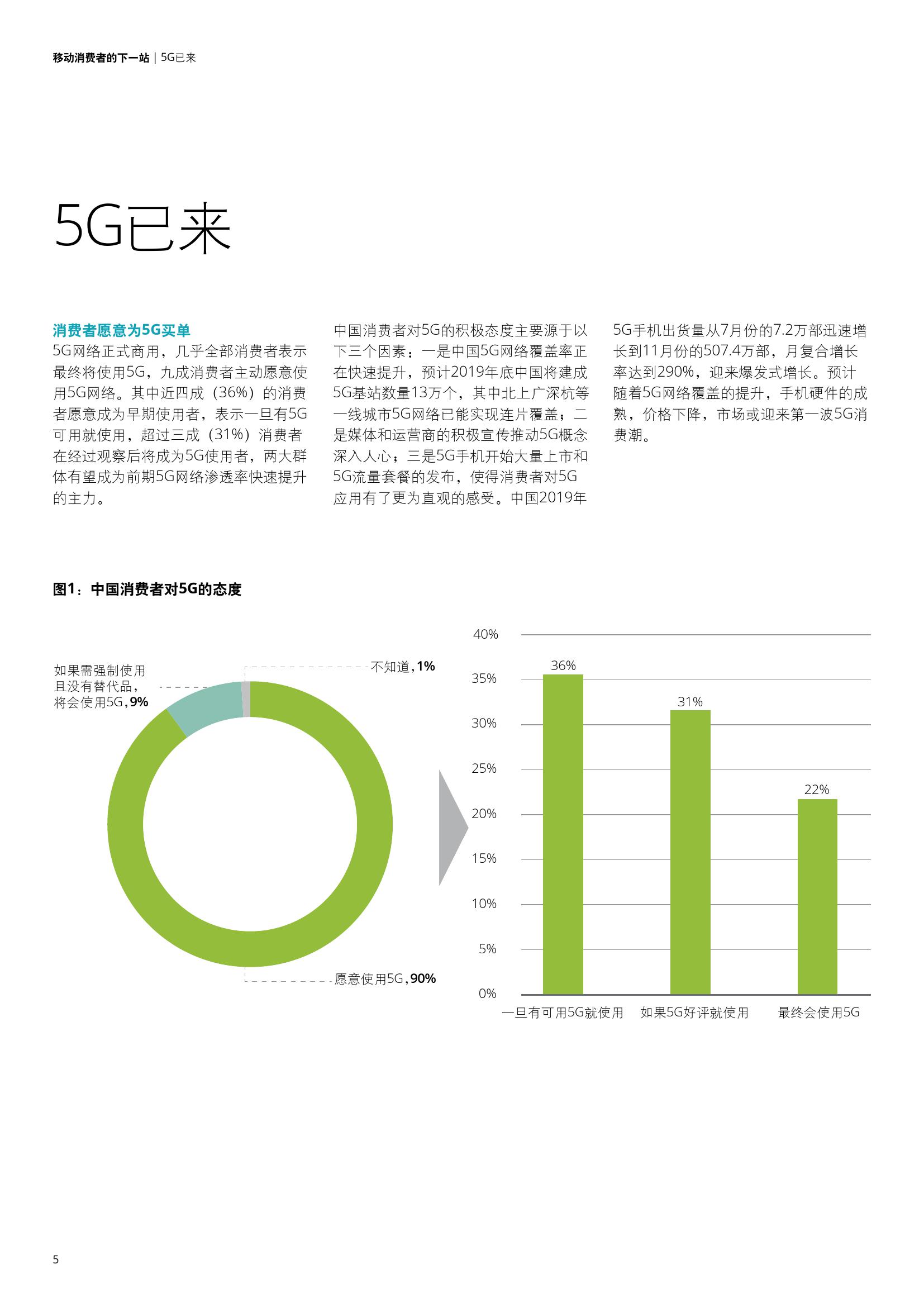 - 5G网络正式商用,几乎全部消费者表示最终将使用5G,九成消费者愿意主动使用5G网络。