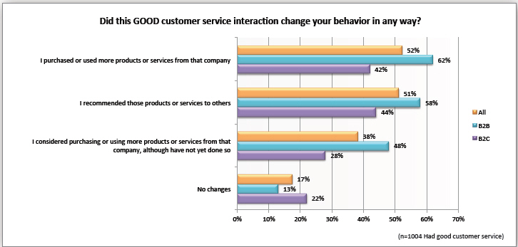 62%的B2B和42%的B2C用户在享受到好的客户体验后会购买更多的产品