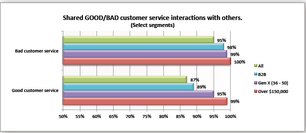 B2B,x一代和高收入家庭人士跟他人分享客户体验的比例更高