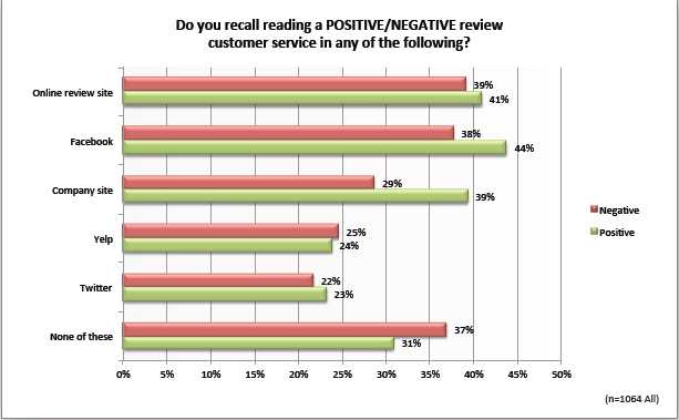 69%的人记得阅读正面的客户服务体验信息,而63%的人记得阅读负面的评论