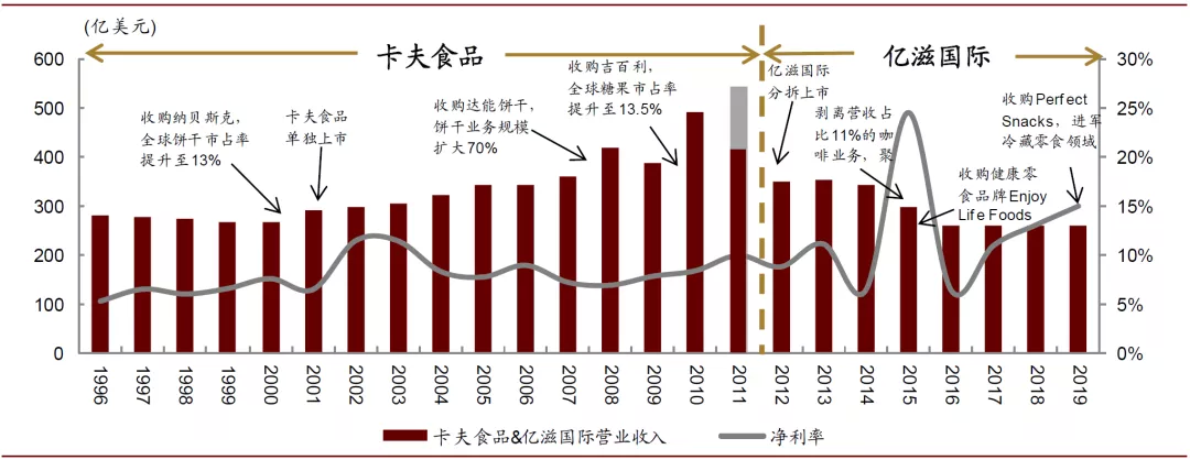 图表: 卡夫食品与亿滋国际历史业绩表现梳理