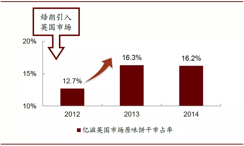图表: 焙朗引入英国市场后原味饼干市占率变化