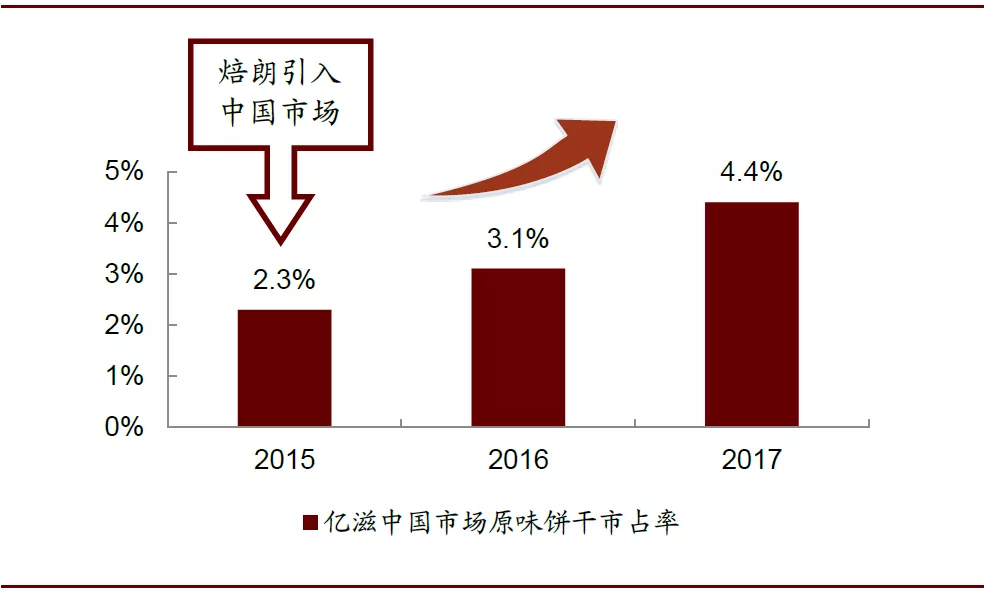 图表: 焙朗引入中国市场后原味饼干市占率变化