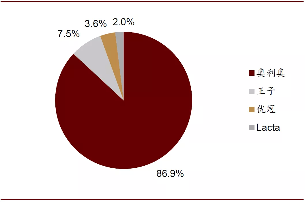 图表: 2012年亿滋各品牌夹心饼干销售额占比(终端口径)