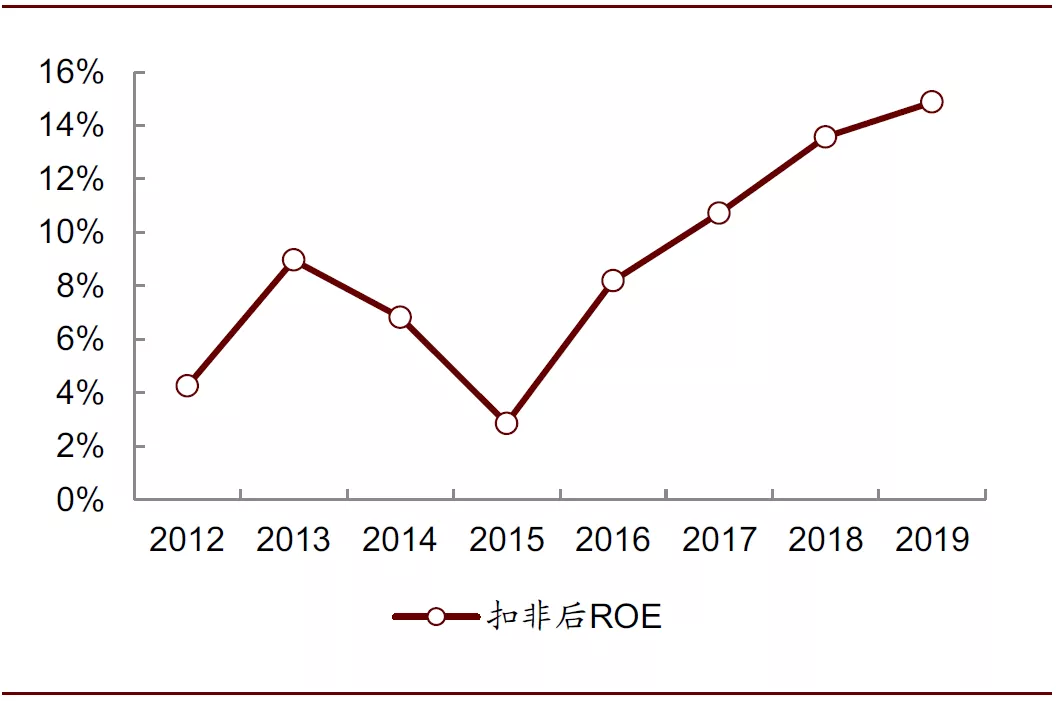 图表: 2012-2019年亿滋国际扣非后ROE情况