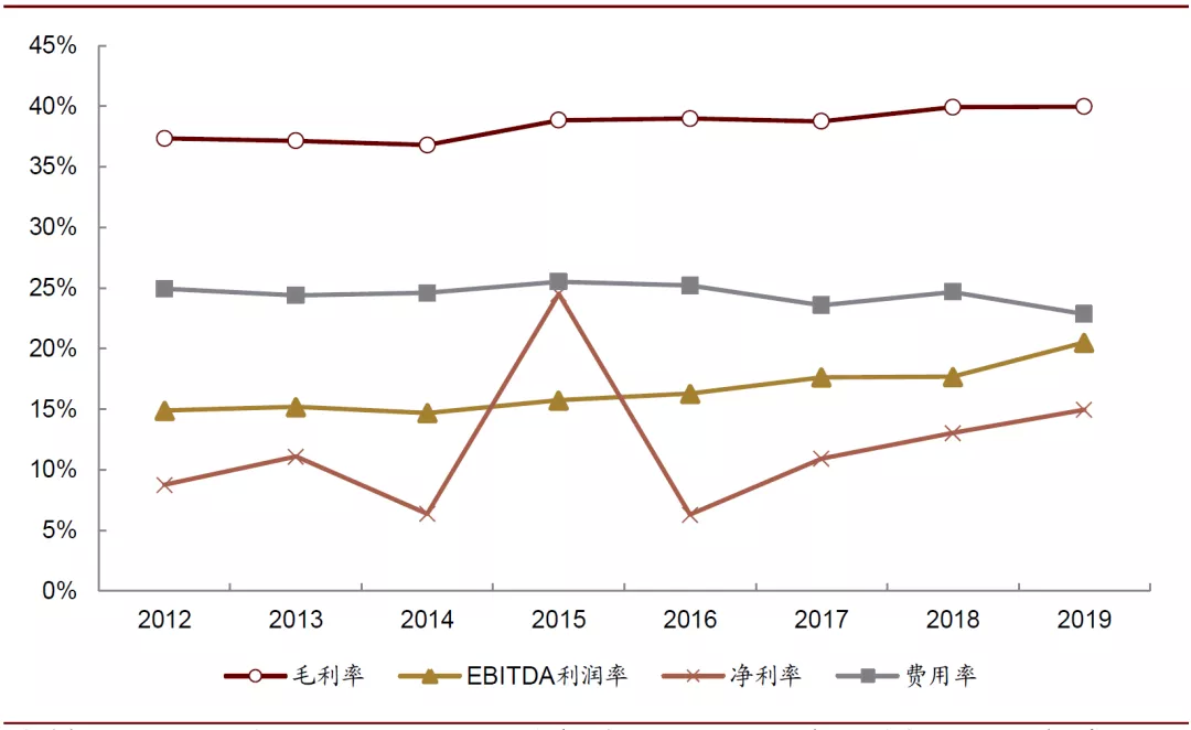 业务结构优化带动盈利能力、营运效率稳步提升。2012-2019年,公司毛利率与EBITDA利润率稳步提升,费用率稳中有降,净利率由于受收购与出售业务产生非经常性损益存在一定波动性,但整体呈现上升趋势。盈利能力提升的主要原因是:①产品价格的提升;②收购公司发挥协同效应带来的成本削减;③广告宣传费用的管控;④公司对低毛利或亏损业务的剥离。同时公司营运效率在同步提升,应收款周转天数逐步下降而应付款周转天数逐步提高,公司现金循环周期逐步改善。剔除资产收购与出售损益的影响,公司扣非后ROE从2012年的4.3%提升至2019年的14.9%,其中2015-2019年实现逐年稳定上升,体现其经营效率提升趋势明显。