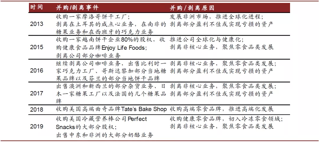 图表: 亿滋国际分拆上市后并购与剥离事件梳理
