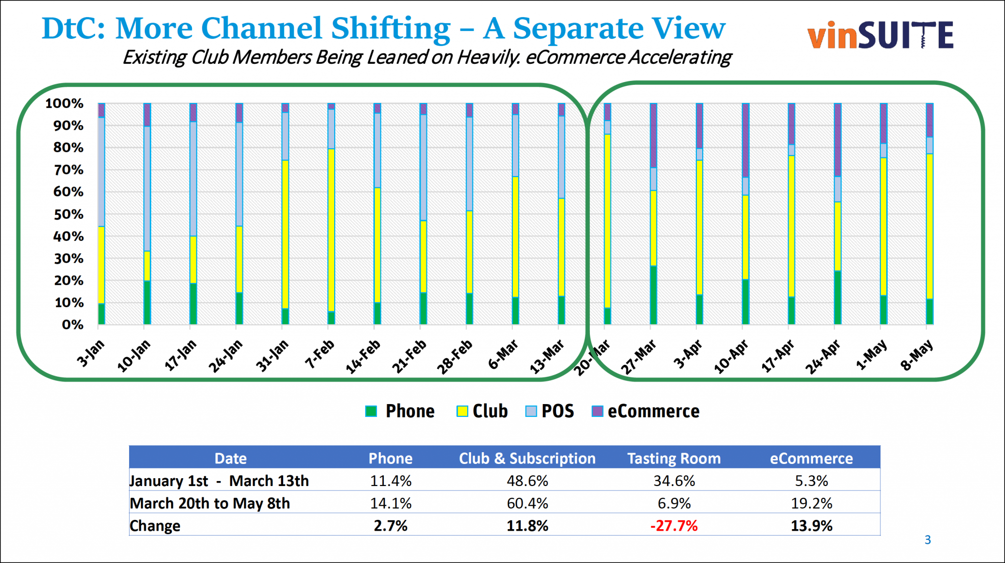 根据美国年度葡萄酒行业状况报告的特别版本,在对酒庄的调查中,只有18%的酒庄有一名全职员工专门分析消费者数据,27%的酒庄有兼职员工负责,55%的酒庄没有这样的职位。换句话说,大部分酒庄也许并不清楚他们自身顾客的基本情况,比如他们的顾客是谁,有什么购买倾向,买了什么酒类,什么时候买等信息。疫情的来临让酒庄意识到消费者数据的价值,他们开始拿起电话联系客户,给俱乐部成员发送促销邮件,并由此挽救了部分业绩。上文首图便可反映出这样的变化。