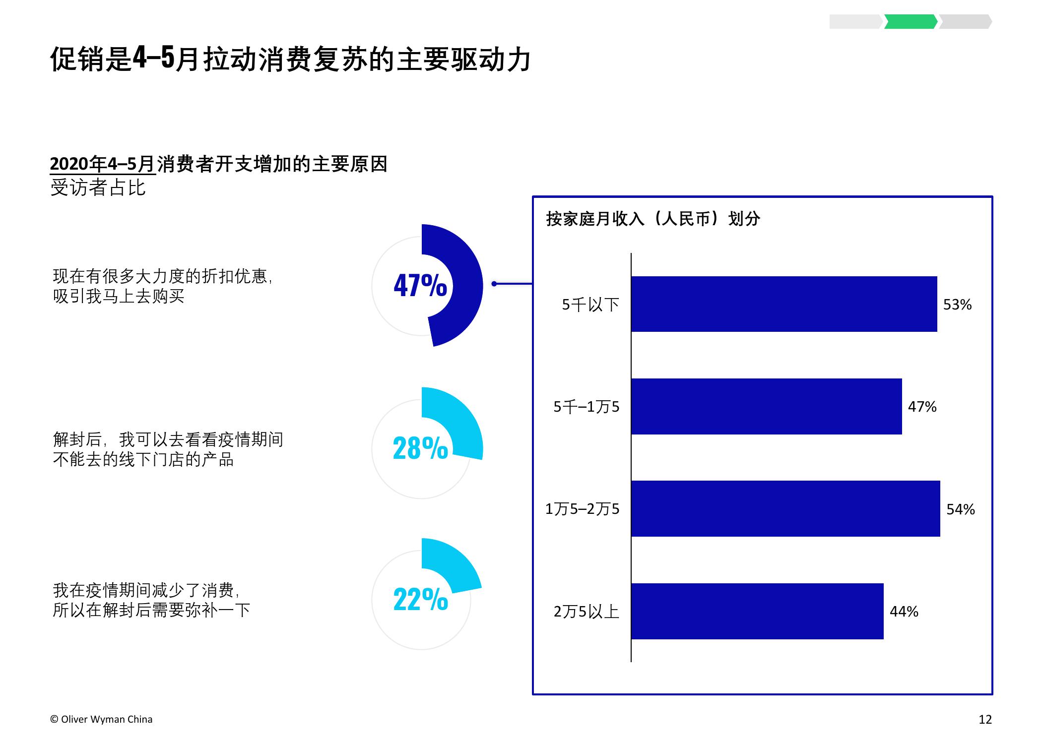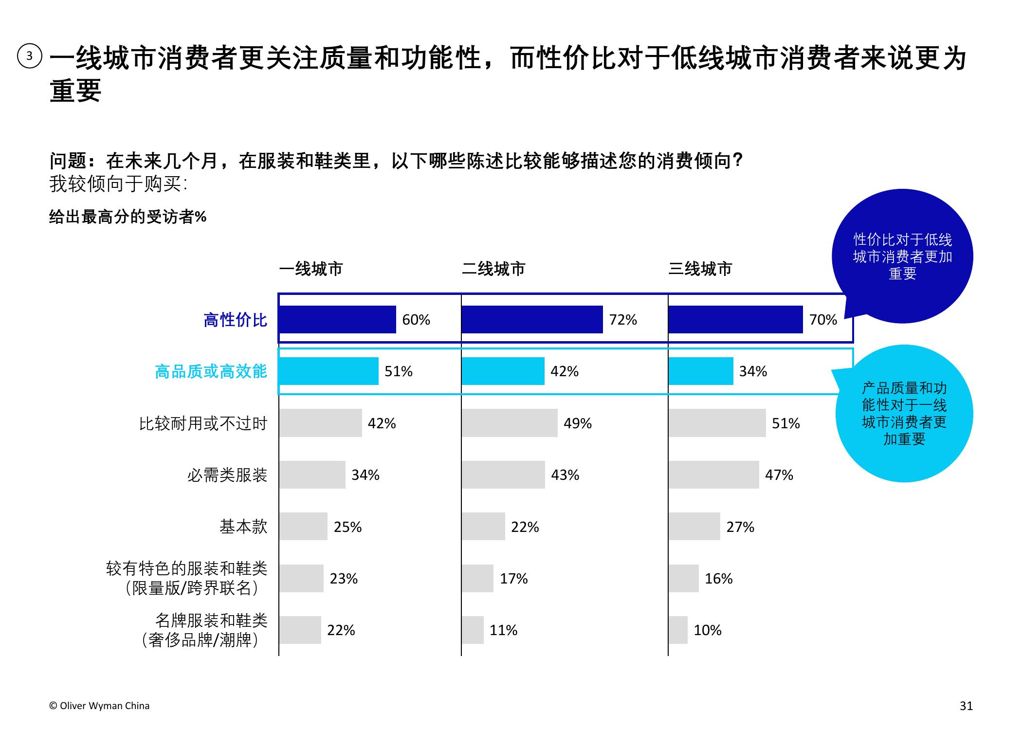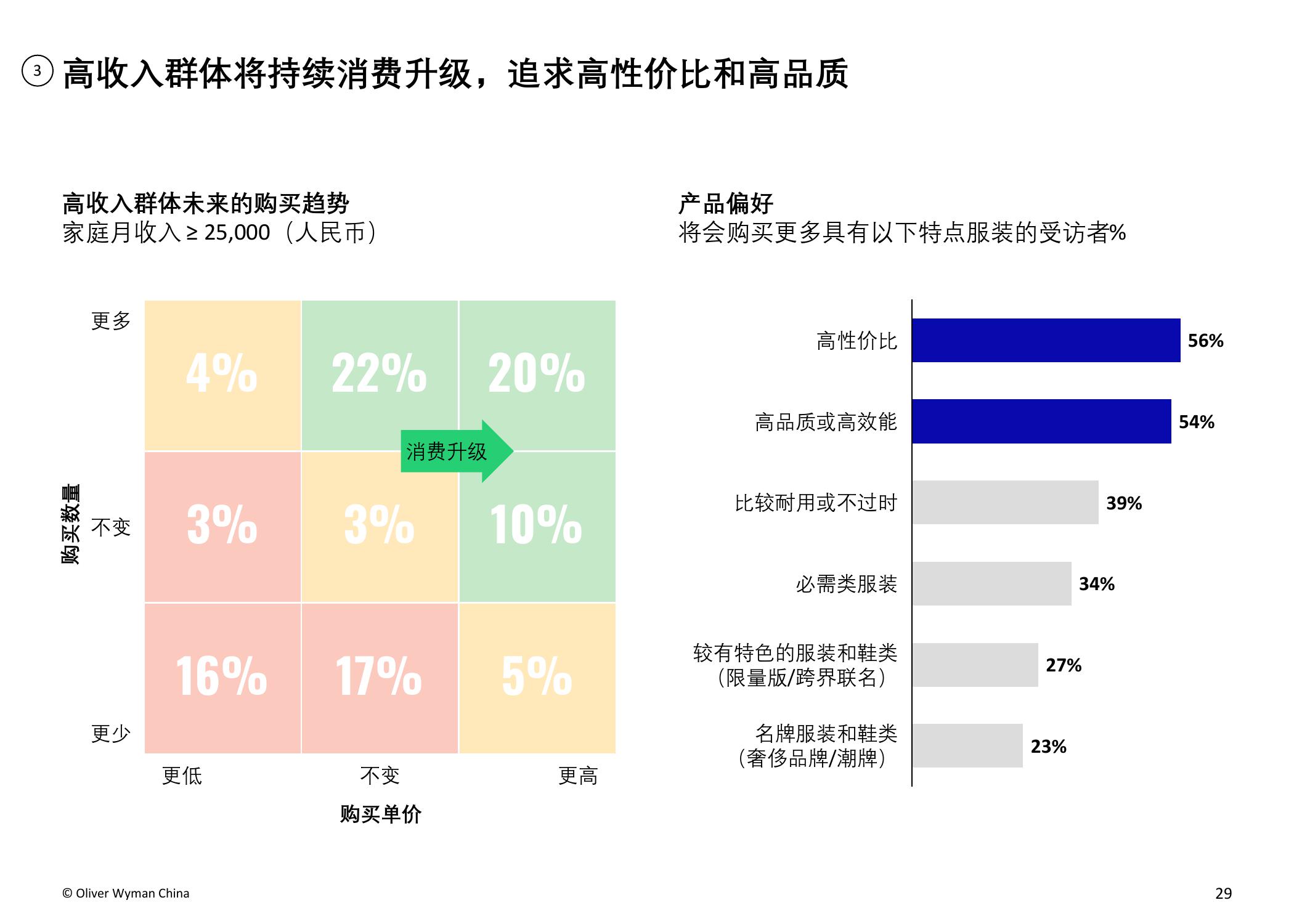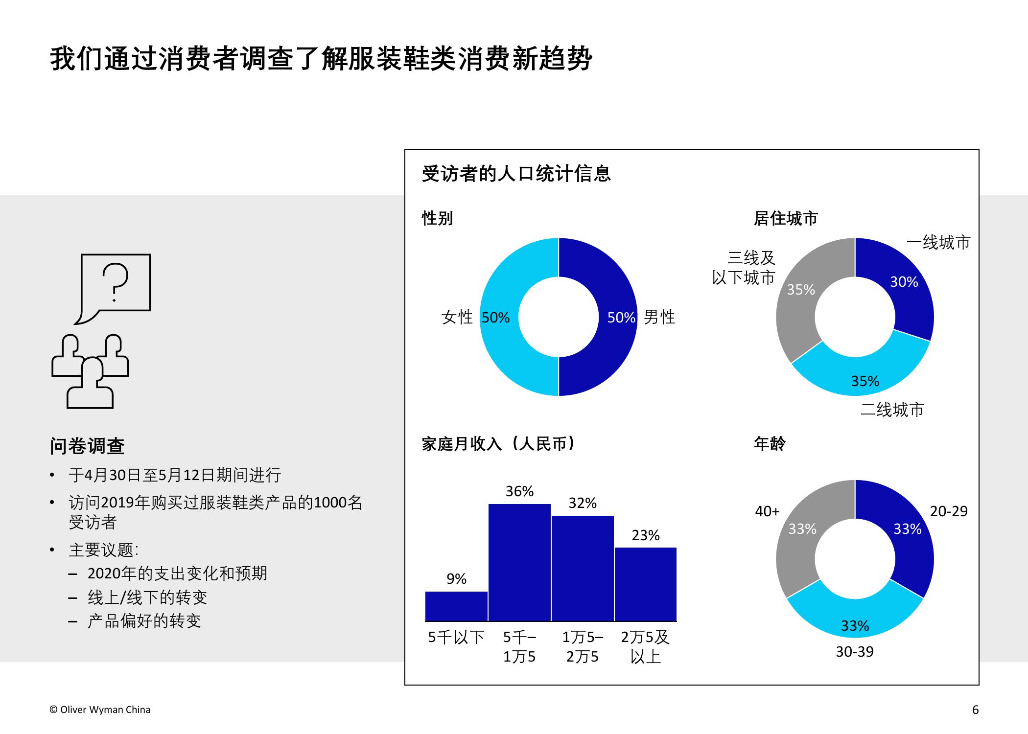 疫情的爆发加速了服装和鞋类品牌向电商转移的步伐。奥纬预测,2020年服装消费者的线上消费总额占比将从2019年的34%上升至40-50%。奥纬调研发现,高收入群体对线上渠道的接受度提升:疫情期间,高收入群体的线上花费占比从最低(疫情前约为47%)跃升至最高(64%)。尽管以年轻一代为主的纯线上消费者的数量有所增加,但高达90%的受访者表示疫情后仍会选择全渠道购物,证明线下实体门店的作用不可或缺。