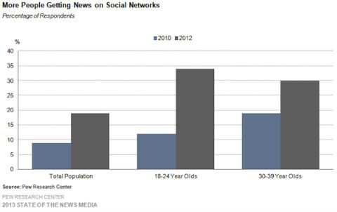 尽管研究显示,大部分新闻读者仍习惯到知名新闻网页去阅读新闻,但随着社交媒体愈来愈发达,已有愈来愈多人藉由Twitter和RSS feeds来追踪自己喜欢的作者--根据Pew今年的研究数据显示,有15%的新闻读者透过社交媒体来获得新闻来源,而且人数仍在增加中。