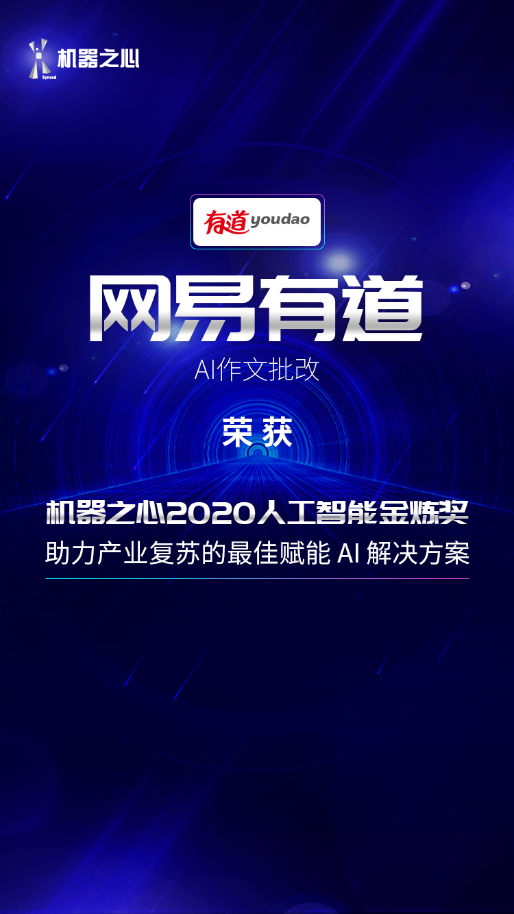 6月19日,机器之心2020人工智能金炼奖评选结果发布,网易有道的“AI作文批改”入选了助力产业复苏的最佳赋能AI解决方案。