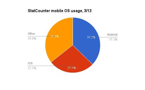 很奇怪的是,StatCounter 公司也做了类似研究,但结果与 NetMarketShare 提供的结果有出入。其数据显示,Android 用户使用网络更多。这两个机构的统计方法可能有所不同,比如这其中包不包括 iPad 的数据。这种两个机构得出的结果差异,反而提醒了大家,不要轻易去相信一些数据,除非你清楚的知道数据是怎么得到的。