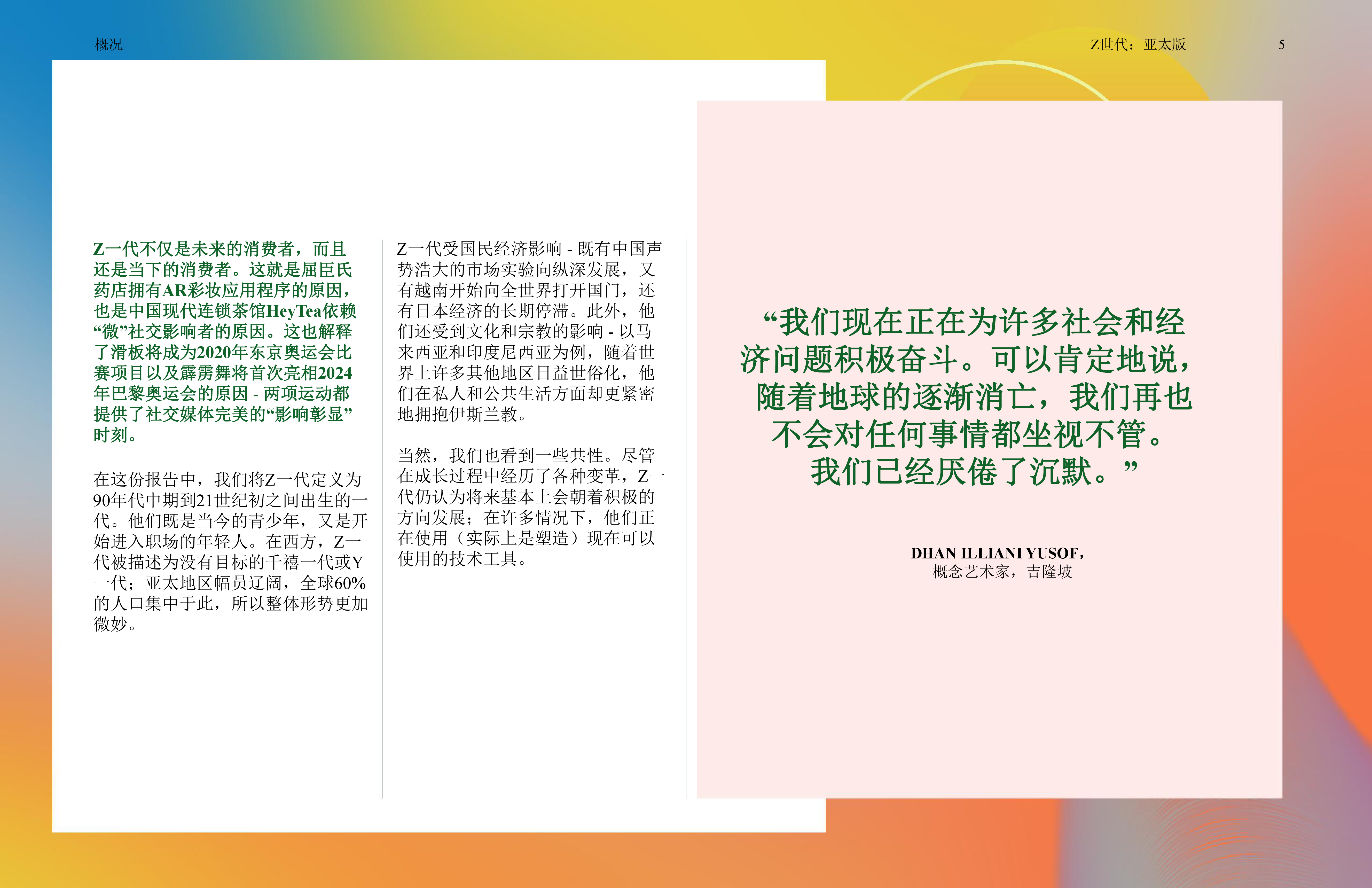通过对亚太区内大量原始消费数据,专家访谈和案例进行研究,洞悉年轻一代的消费行为和动机,预测Z世代下品牌新趋势和机会。