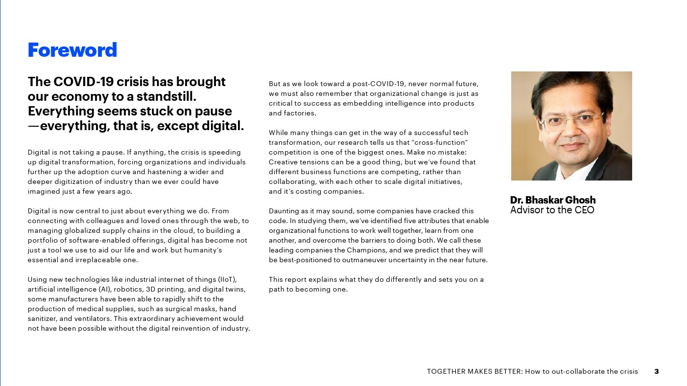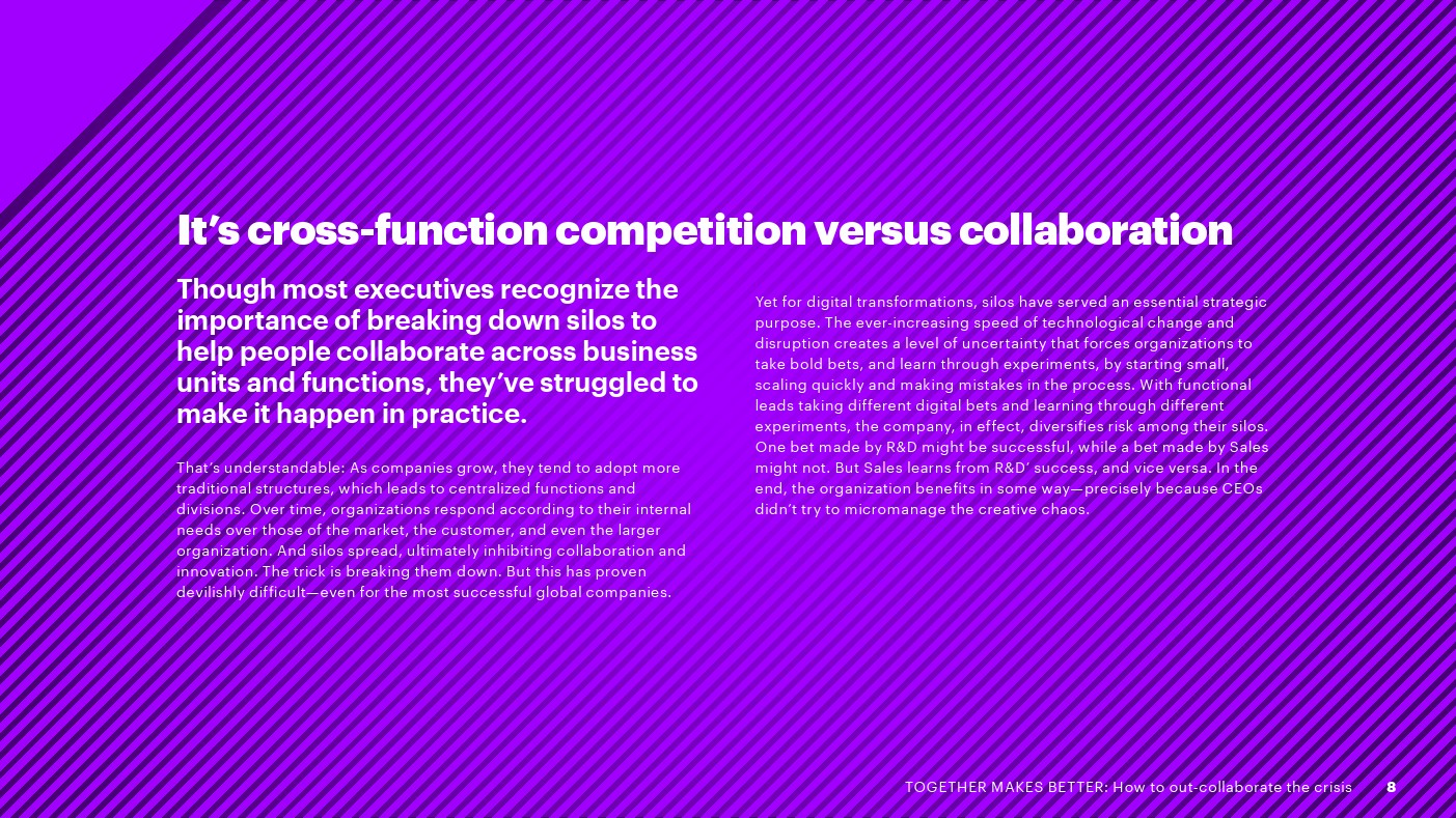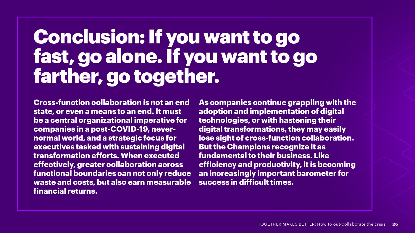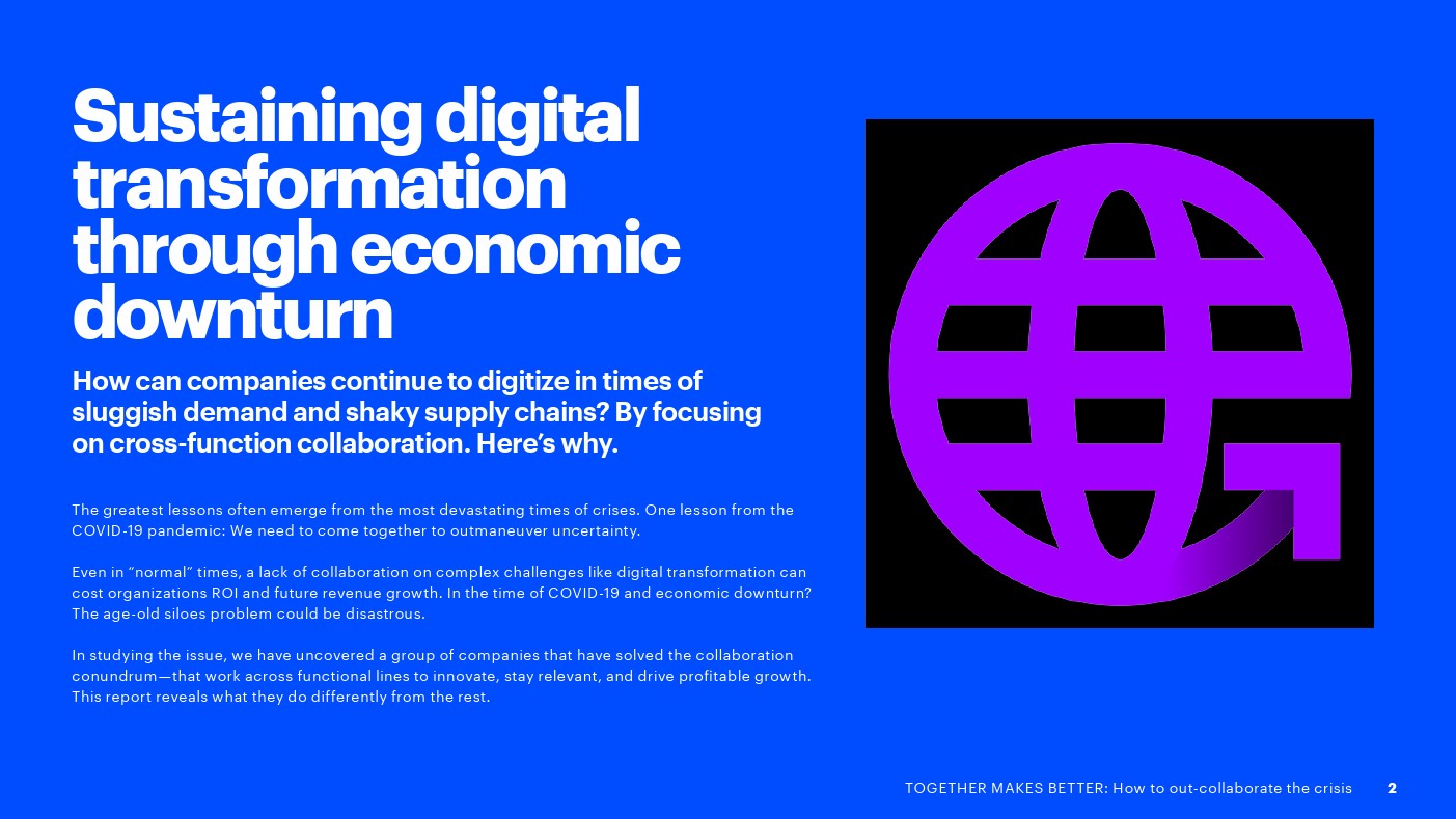 埃森哲发布了新报告“合则两利——如何摆脱危机”。75%的高管表示,各部门在数字化方面是竞争而不是合作关系,这增加了成本,吞噬了预期的收入增长。