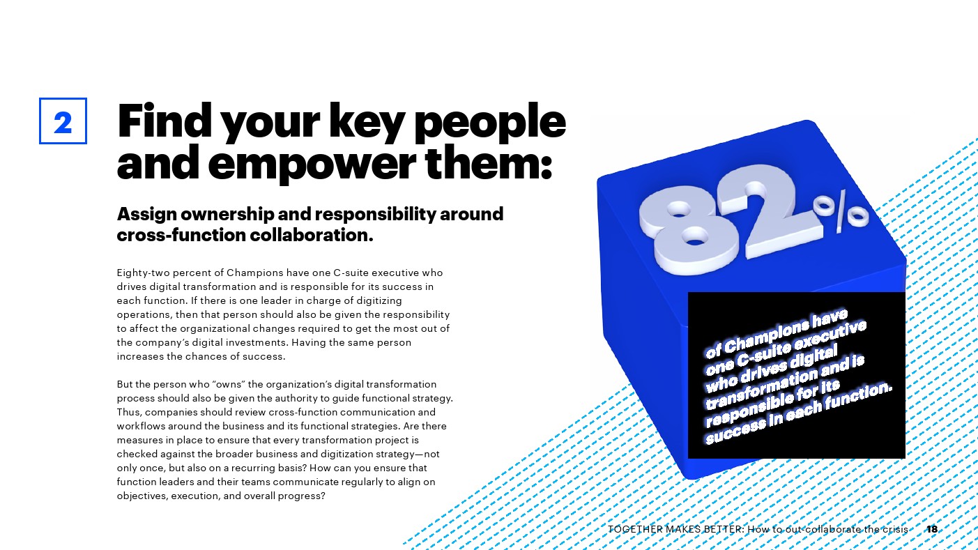 2.更有可能由一名高管负责所有职能的整体数字化转型和数字化成功(82%对66%)。