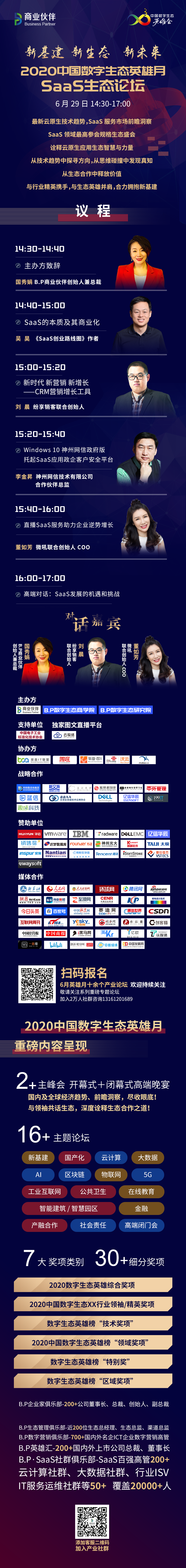 以“SaaS服务破局”为主题的SaaS专题论坛将于6月29日召开,旨在借助中国数字生态英雄会的影响力,打造SaaS生态领域思想碰撞的交流平台,诠释SaaS生态的智慧与力量,推动SaaS生态的繁荣发展。
