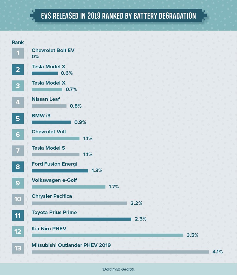 调查分析了2012-2019年发布的64款电动汽车,以确定汽车制造商在提高汽车的电池降级率方面取得了进展。还调查了2019年哪款车型的电池最耐用。