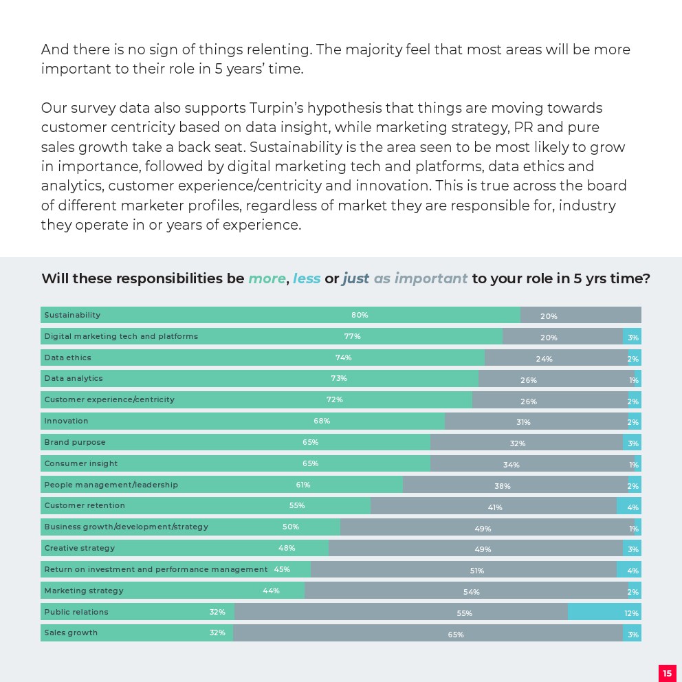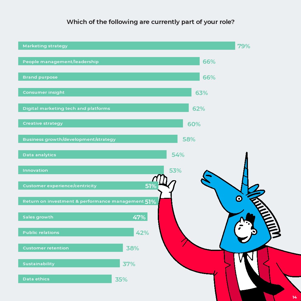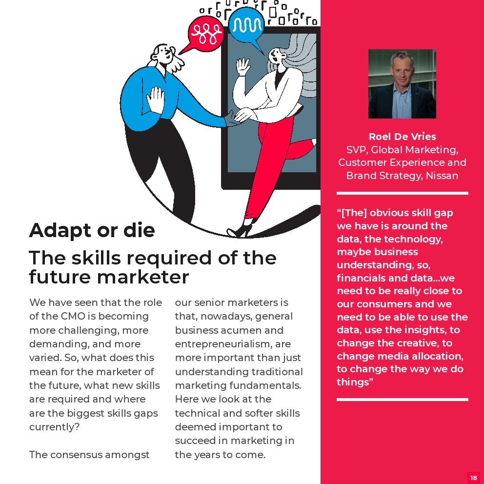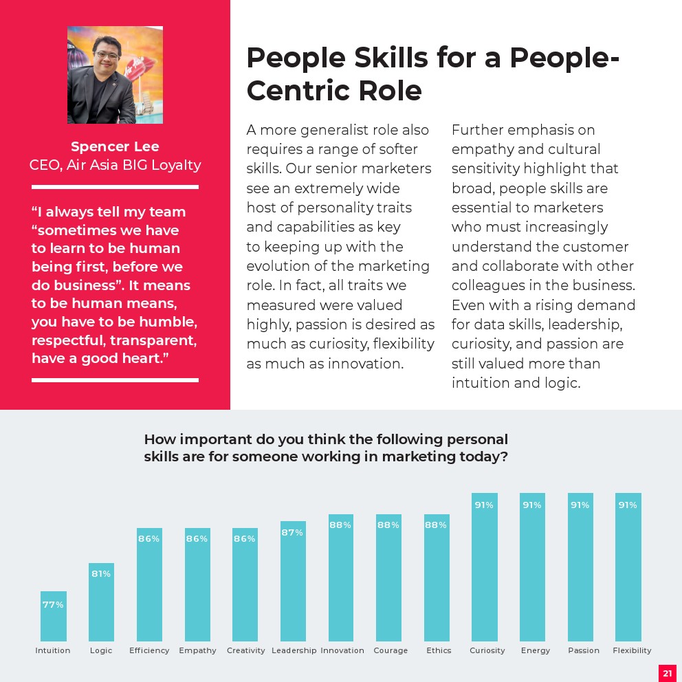 高级营销人员认为有很多个人技能很有价值。例如,灵活性很重要,91%的受访者提到了这一点。