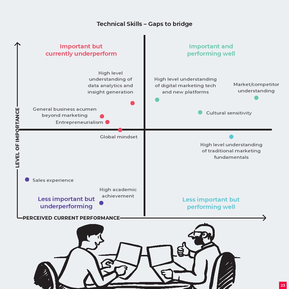 接受调查的近700名高级营销人员认为,掌握这些新技能的人(88%)对市场了如指掌。不仅如此,许多高级营销人员还认为,文化敏感度(80%)、商业敏锐度(78%)和创业精神(75%)等技能对从事营销工作的人来说很重要。前数字时代的营销人员可能会认识到这些是他们自己成功的基石。