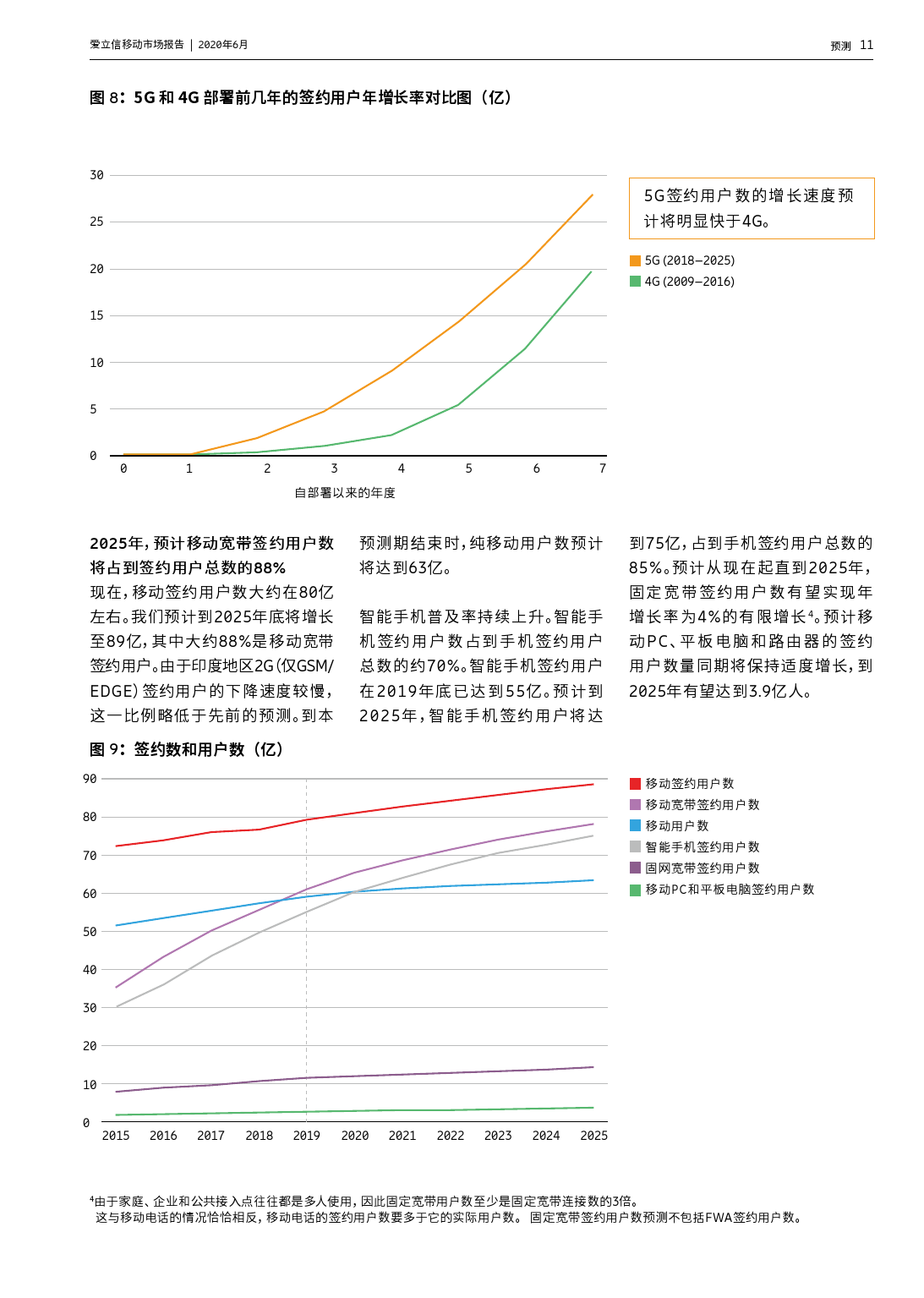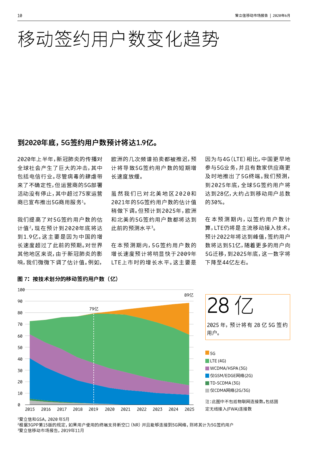 到2025年底,爱立信预计全球5G用户将达到28亿,高于上一版报告的26亿。爱立信在其2019年11月的更新中预测,到今年年底将有1亿个5G连接。