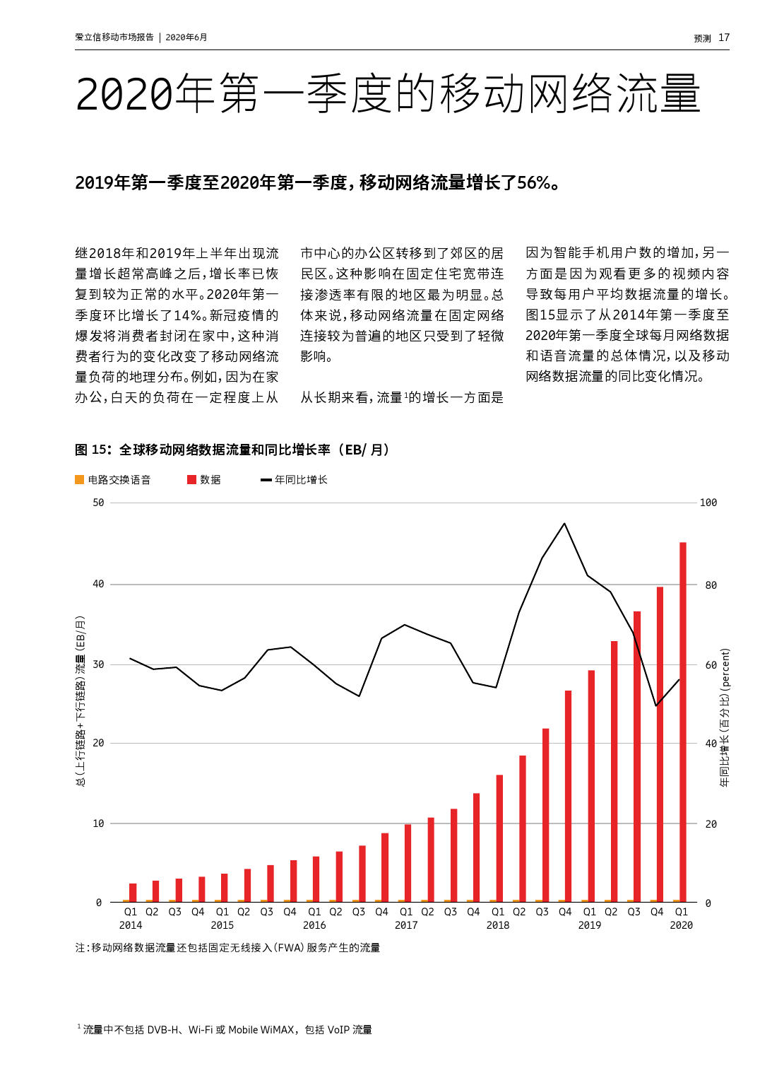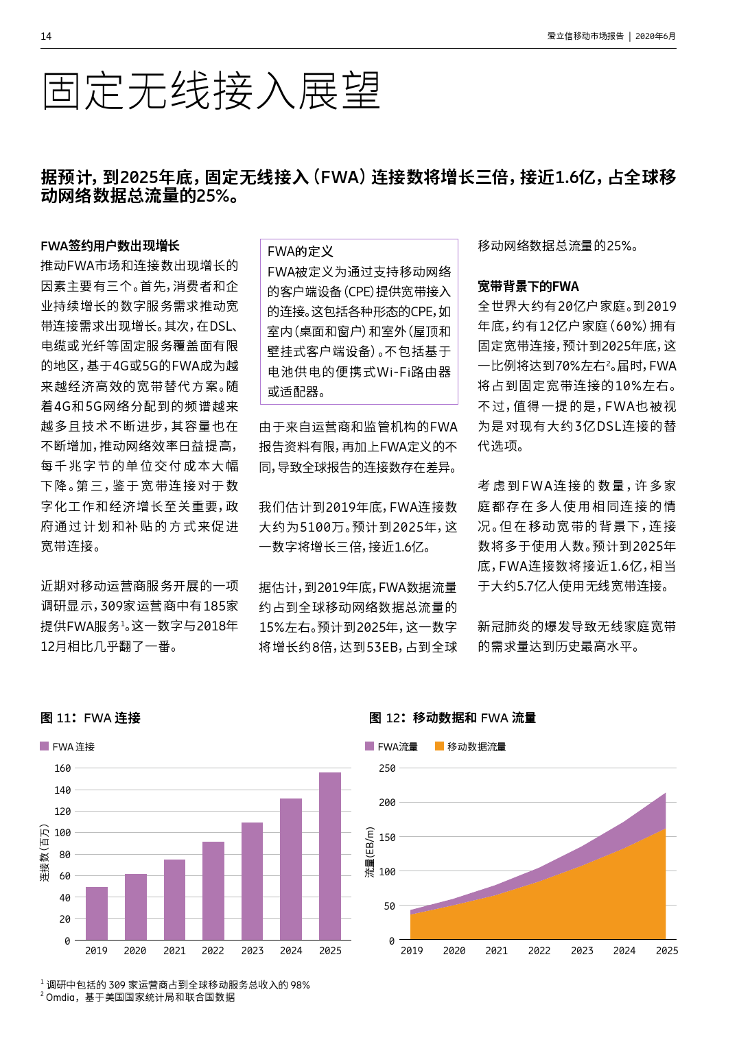到预测期末,供应商预计FWA将占全球移动网络数据流量的25%,而在2019年底这一比例为15%。最新报告是其第一次做出FWA具体预测的报告。