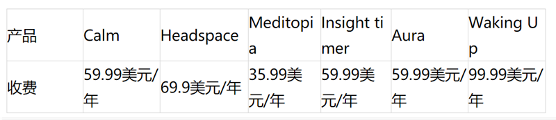 海外的冥想类 App 的变现模式都非常简单,几个头部产品都主要依靠会员订阅来获取收入。价格方面,60 美元一年的订阅价格是主流价位。