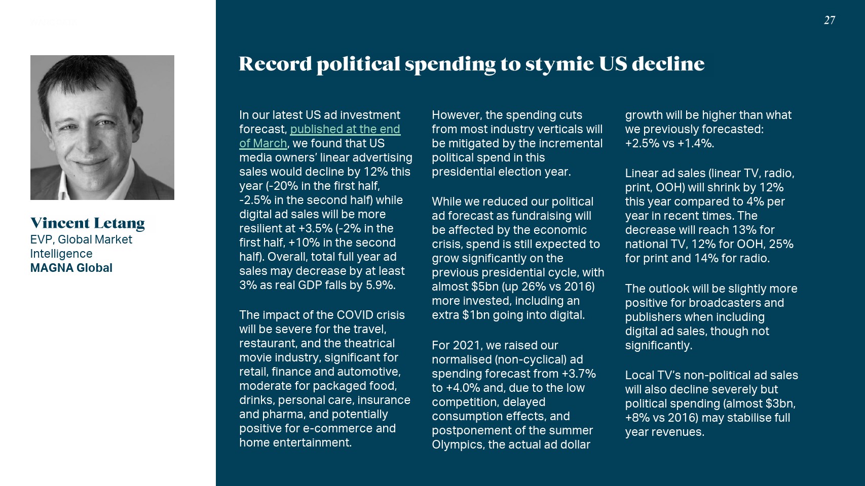 在美国这个世界上最大的广告市场(占全球广告支出的32.5%),今年的广告支出将下降3.5%,总额下降66亿美元。