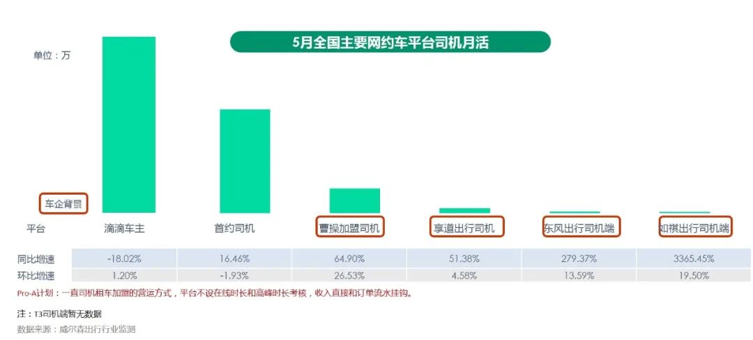 各主要平台(首汽约车除外)用户月活环比均有不同幅度的上涨,其中曹操出行由于实施pro-A*司机加盟政策,涨幅达26.53%。