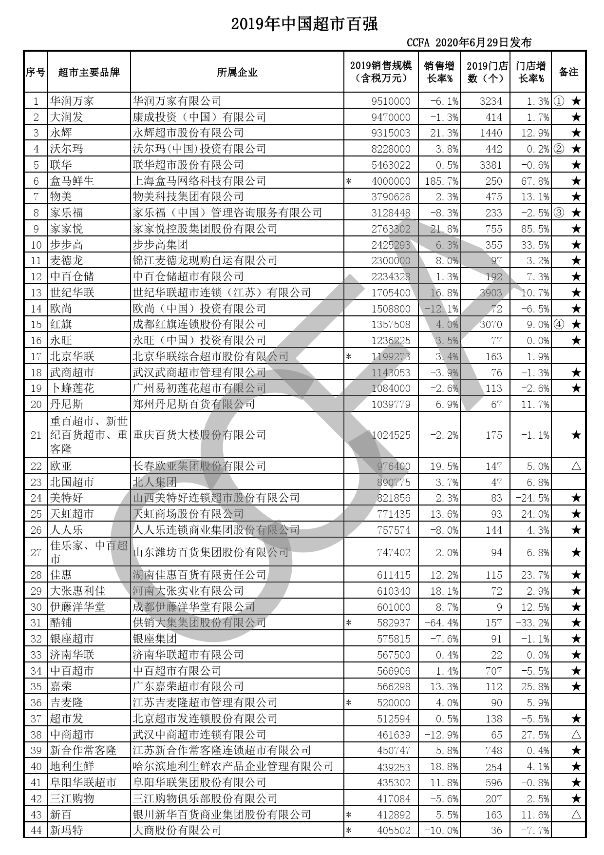 CCFA:2019年中国超市百强 更多阅读:CCFA:2020年中国便利店TOP100榜单CCFA:2022零售连锁品牌数字化运营研究及策略TMI&CCFA:2020数字化特许经营加盟投资人画像及行为研究报告CCFA&饿了么:2020新茶饮研究报告CCFA:2020年4月法国汽车行业市场数据CCFA:2021新茶饮研究报告CCFA:2023年中国超市TOP100出炉 沃尔玛(中国)以1202亿元销售额连续第三年稳居榜首CCFA&美团:2021中国餐饮加盟行业白皮书KPMG&CCFA:202年中国便利店发展报告CCFA&美团:2023中国餐饮加盟TOP100(附榜单)CCFA:生活服务连锁企业数字化应用情况分析美团&CCFA:2023中国餐饮加盟行业白皮书Demand Gen :制造商将数字转换扩展到销售和营销报告前程无忧:2021年Q1集成电路/半导体市场供需报告数字之旅的时代启幕——空间计算