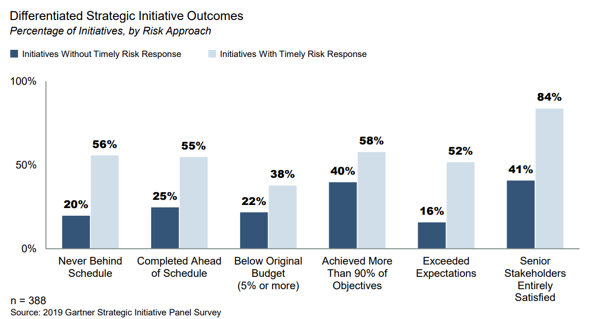 Gartner专家研究了战略计划如何针对多个衡量标准执行,以及风险响应的及时性对此有何影响(参见图1)。
