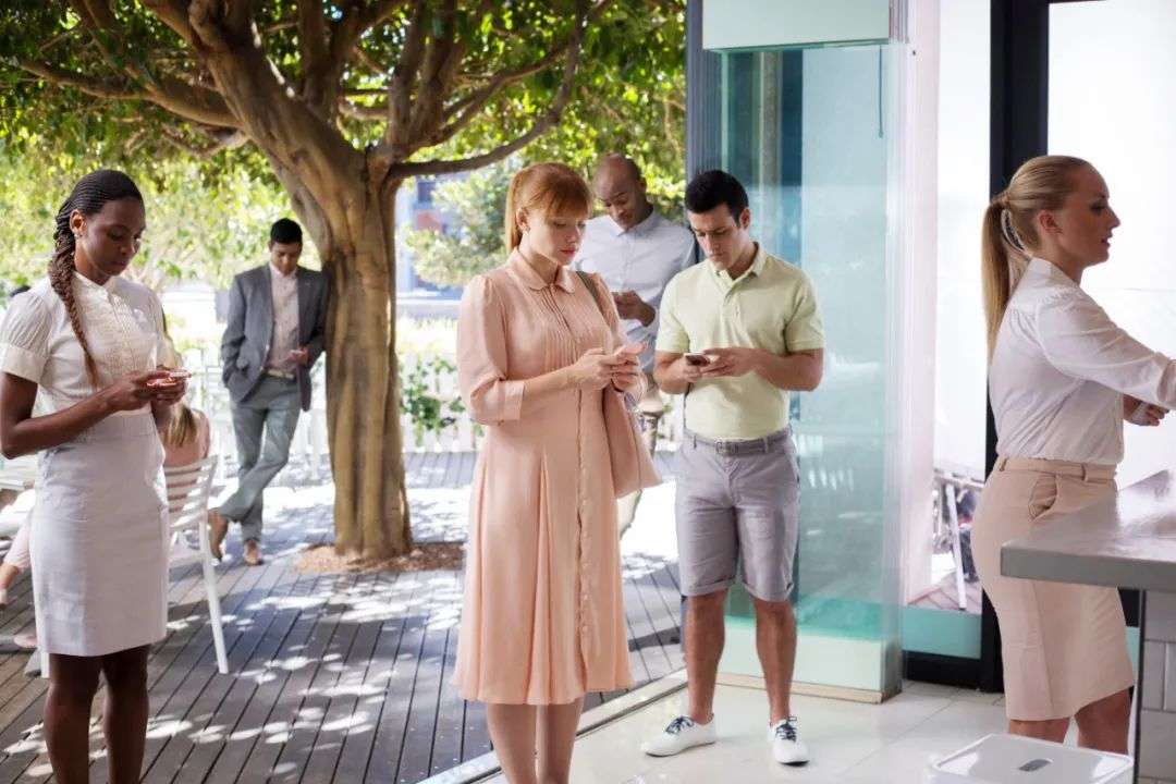 户外公共空间里,所有人都在看手机——社交媒体也许并没有使人走得更近,而使人更为疏远。
