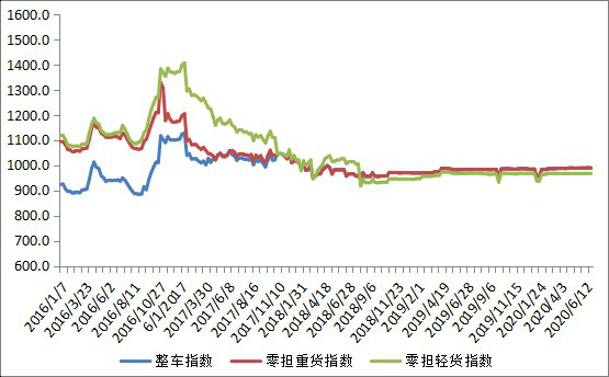 本周(2020年6月29日-7月3日),由中国物流与采购联合会和林安物流集团联合调查的中国公路物流运价指数985.29点,比上周回落0.07%。