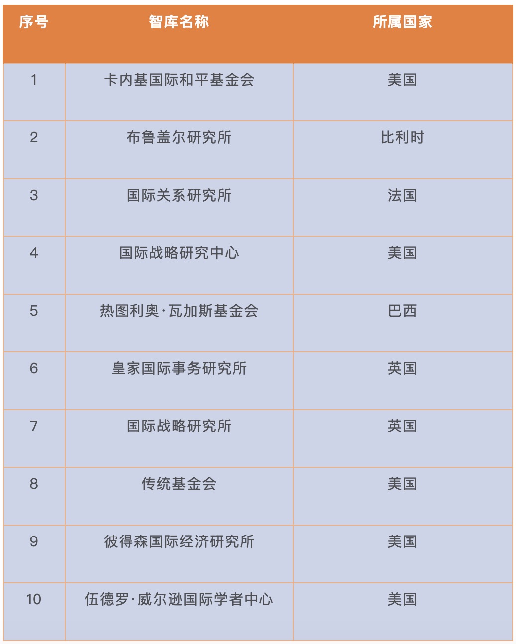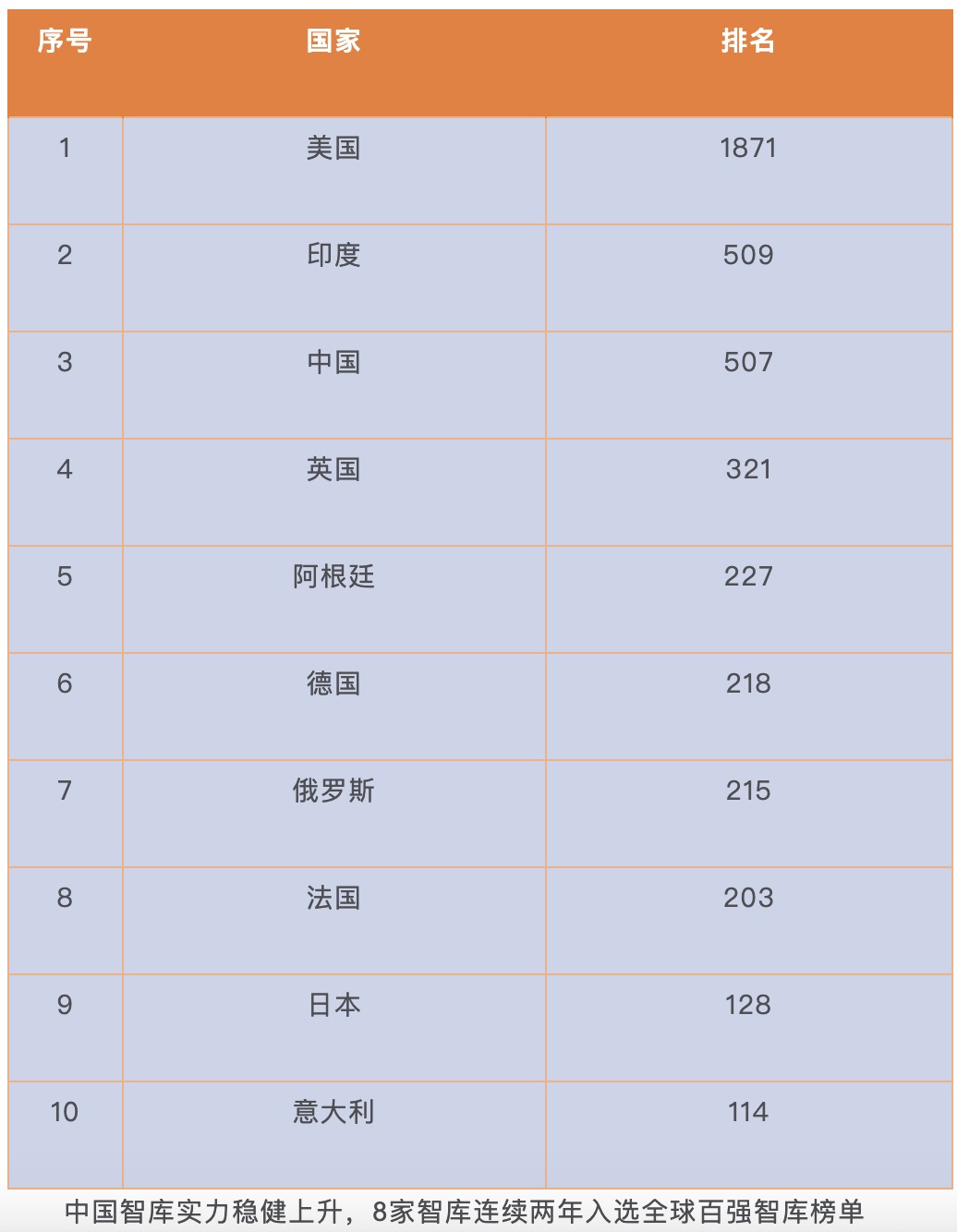 2019全球智库最多国家(前10)
